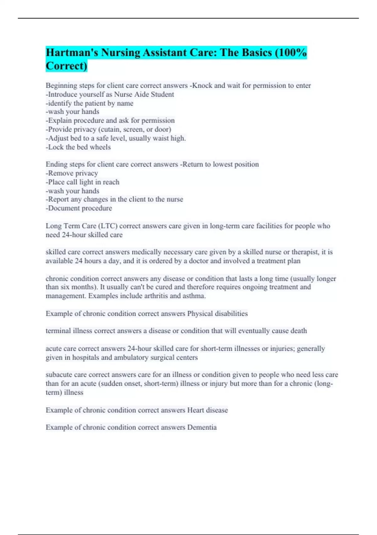 - Hartman\'s Nursing Assistant Care: The Basics (100%