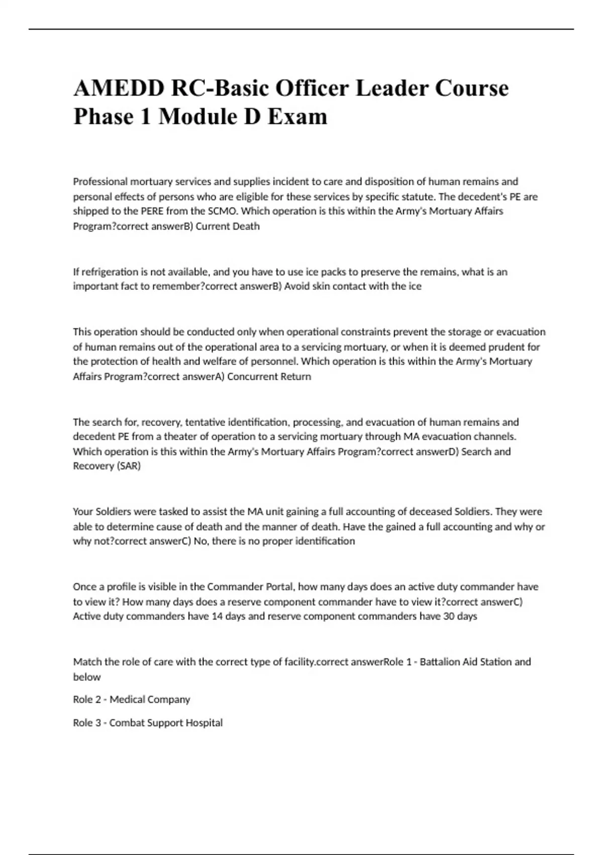 AMEDD RC-Basic Officer Leader Course Phase 1 Module D Exam 2023 with complete solutions