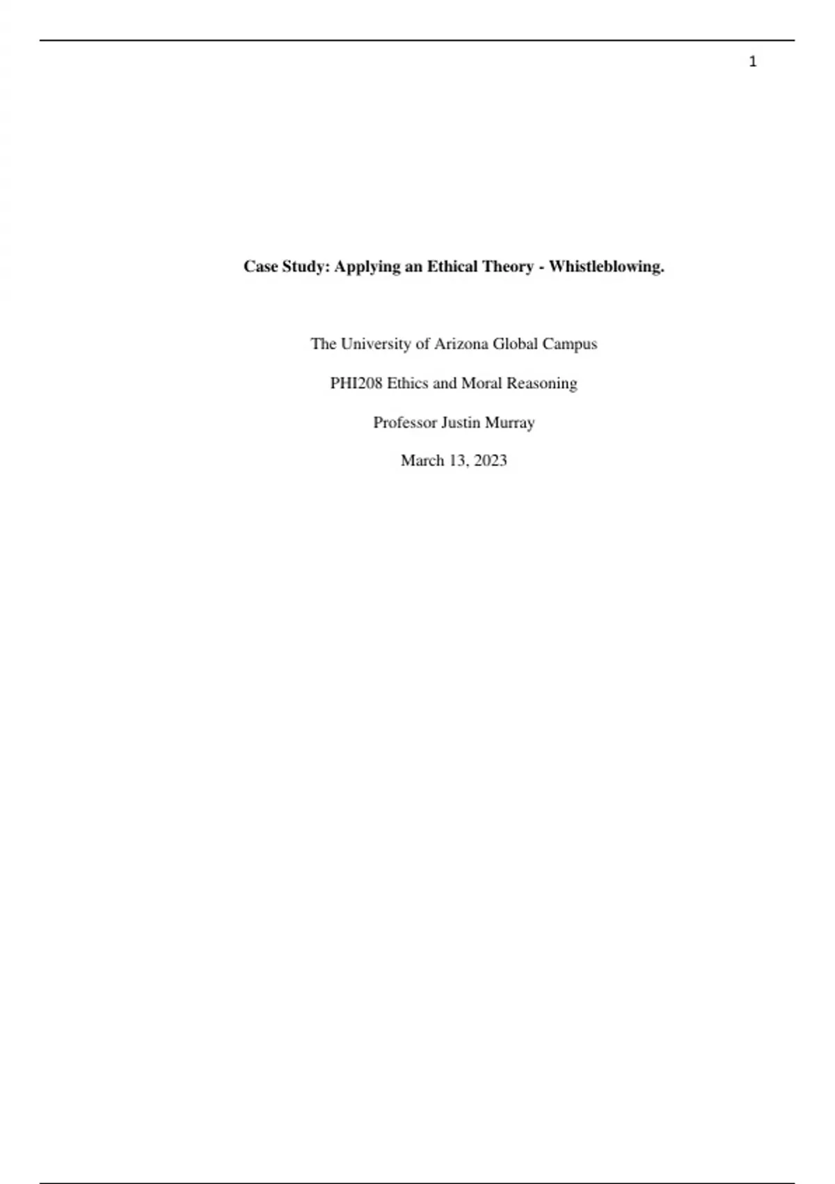 Case Study: Applying an Ethical Theory - Whistleblowing Essay PHI 208 Ethics and Moral Reasoning