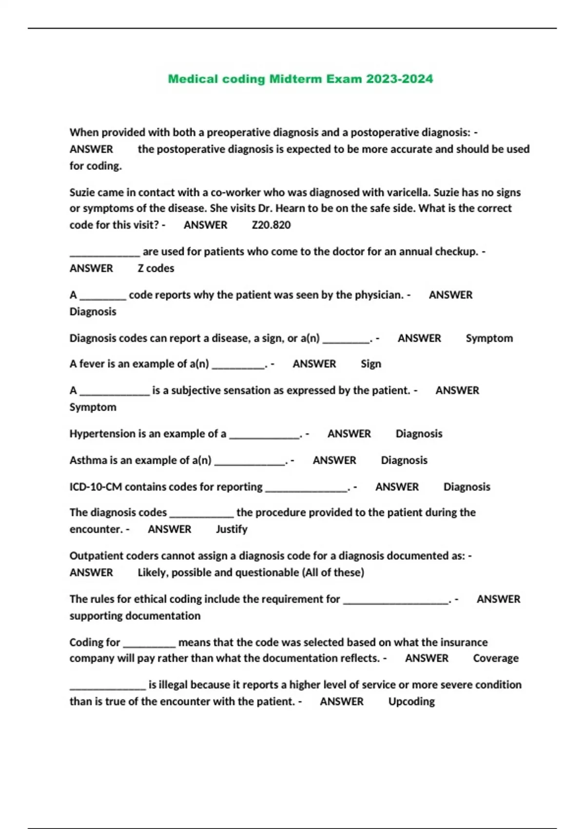 Medical coding Midterm Exam ...