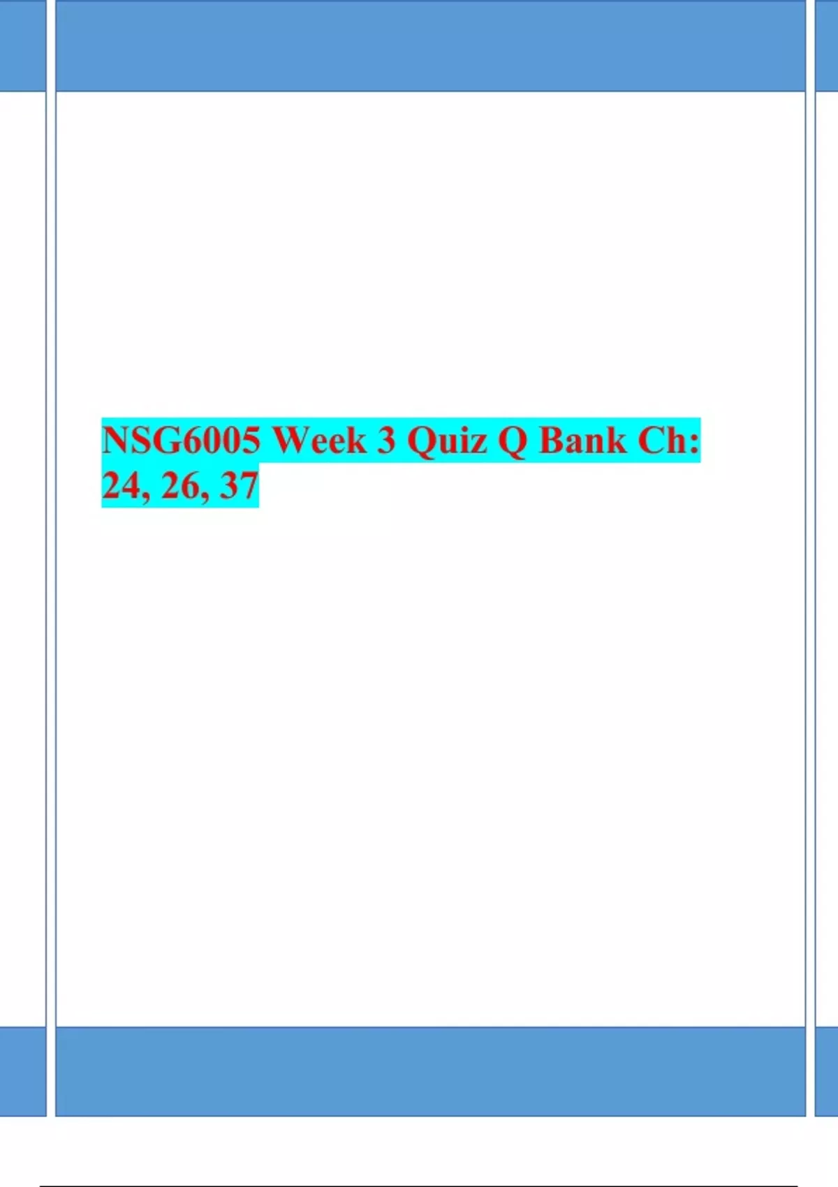 NSG6005 Week 3 Quiz Q Bank Ch: 24, 26, 37 (Verified answers, Download To Score A)