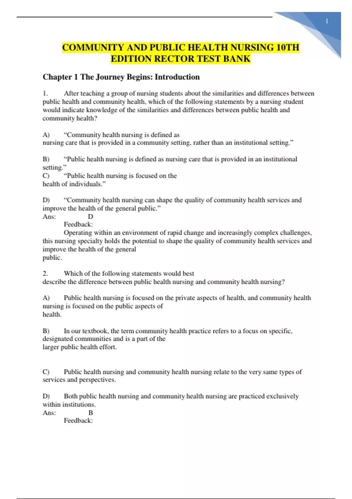 COMMUNITY AND PUBLIC HEALTH NURSING 10TH EDITION RECTOR TEST BANK/COMMUNITY AND PUBLIC HEALTH NURSING 10TH EDITION RECTOR TEST BANK/COMMUNITY AND PUBLIC HEALTH NURSING 10TH EDITION RECTOR TEST BANK