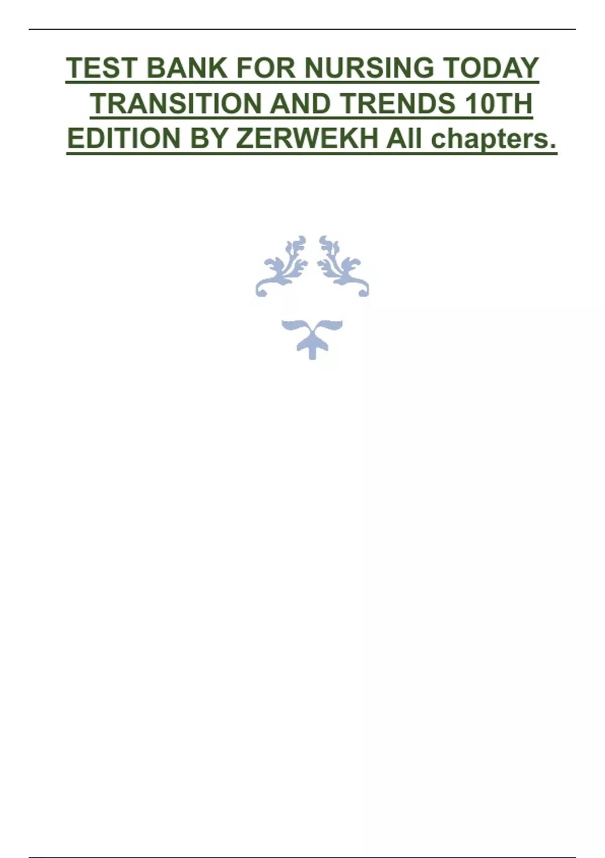 TEST BANK FOR NURSING TODAY TRANSITION AND TRENDS 10TH EDITION BY ZERWEKH All chapters..pdf