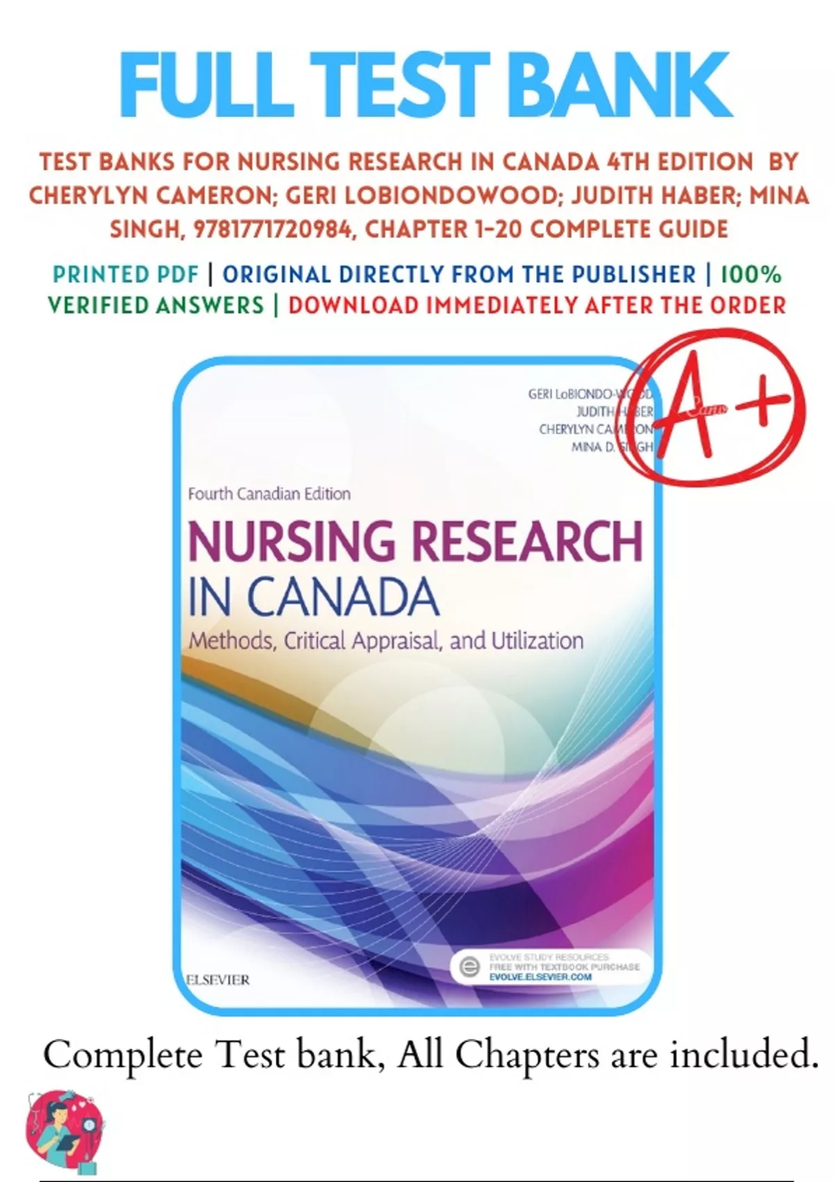 Test Banks For Nursing Research in Canada 4th Edition by Cherylyn Cameron; Geri LoBiondoWood; Judith Haber; Mina Singh, 9781771720984, Chapter 1-20 Complete Guide