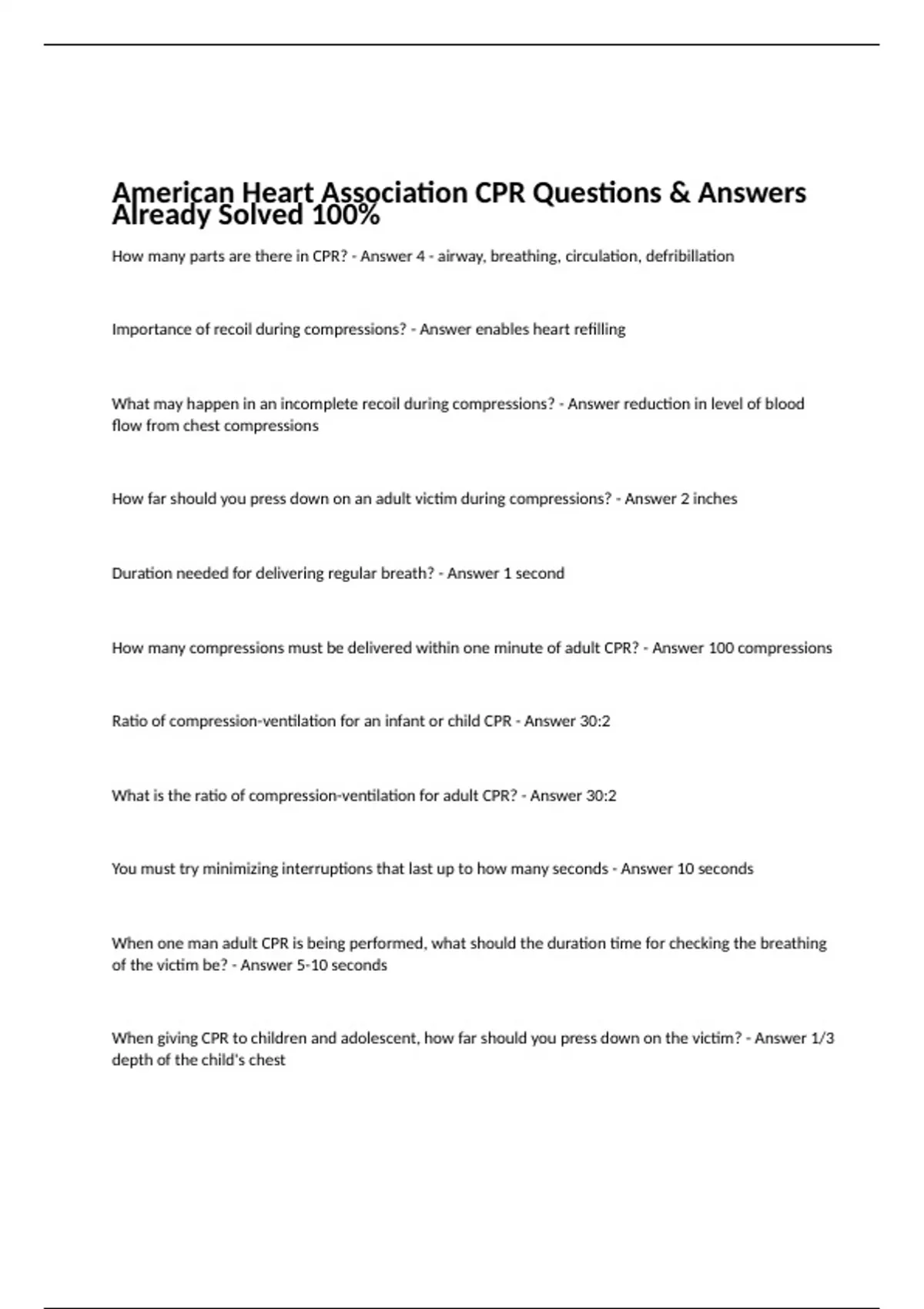 American Heart Association CPR Test Correct 100%
