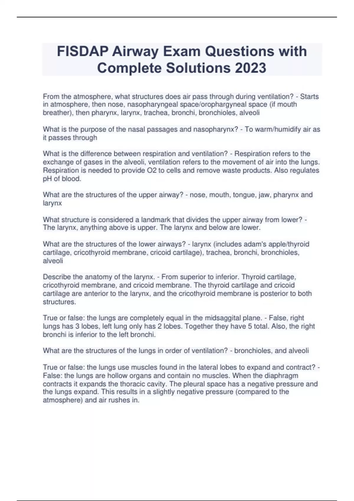 FISDAP Airway Exam Questions with Complete Solutions 2023