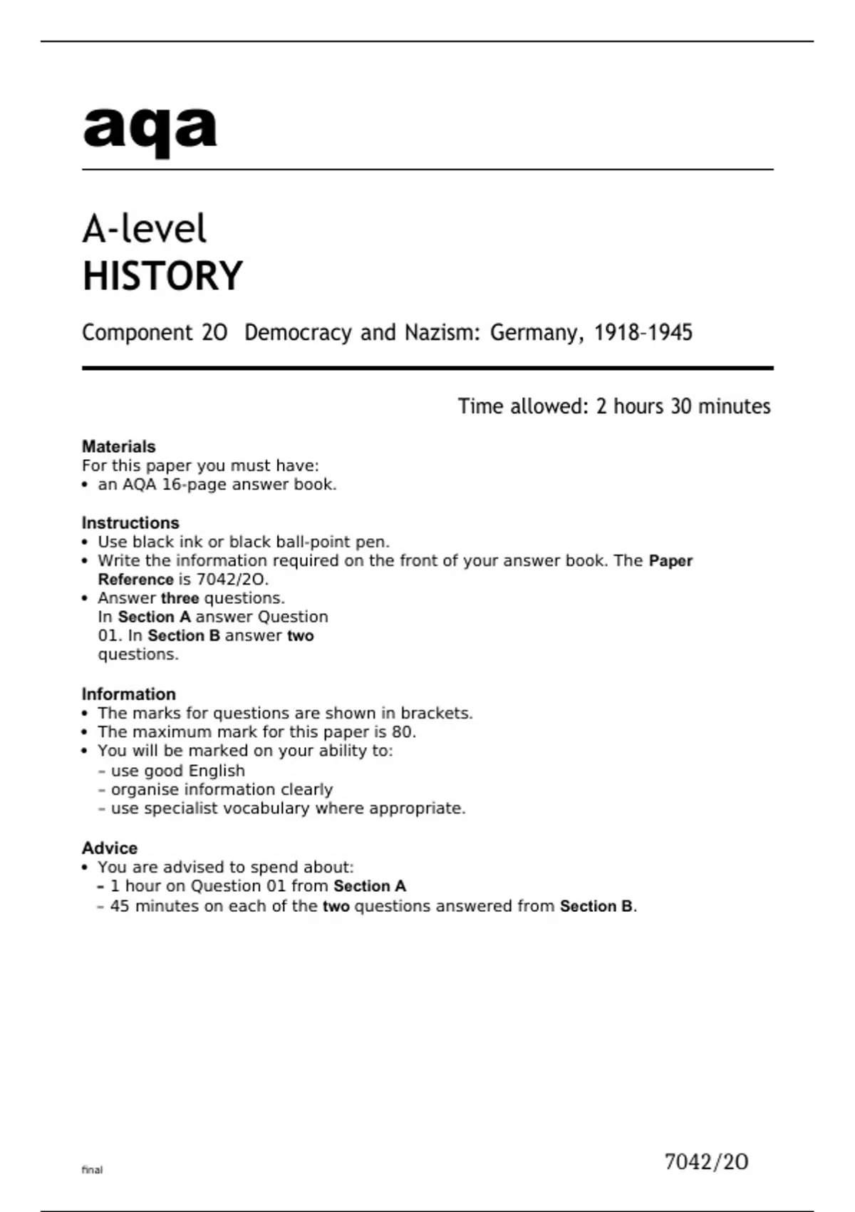 - History A-level 7042-2O-QP