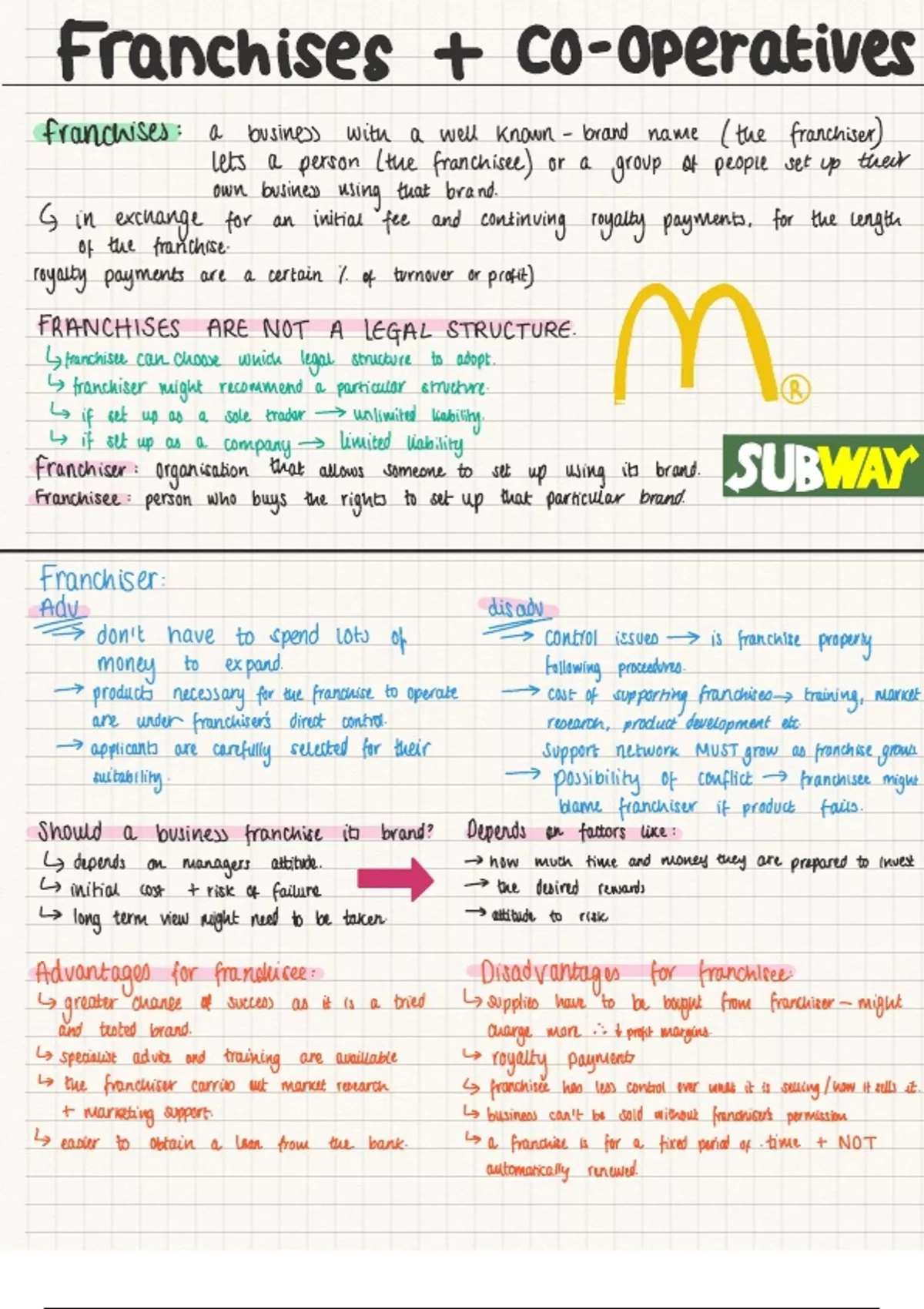 Revision notes on chapter 3 of the introduction to business topic, in the OCR a level specification. Franchises and co-operatives.