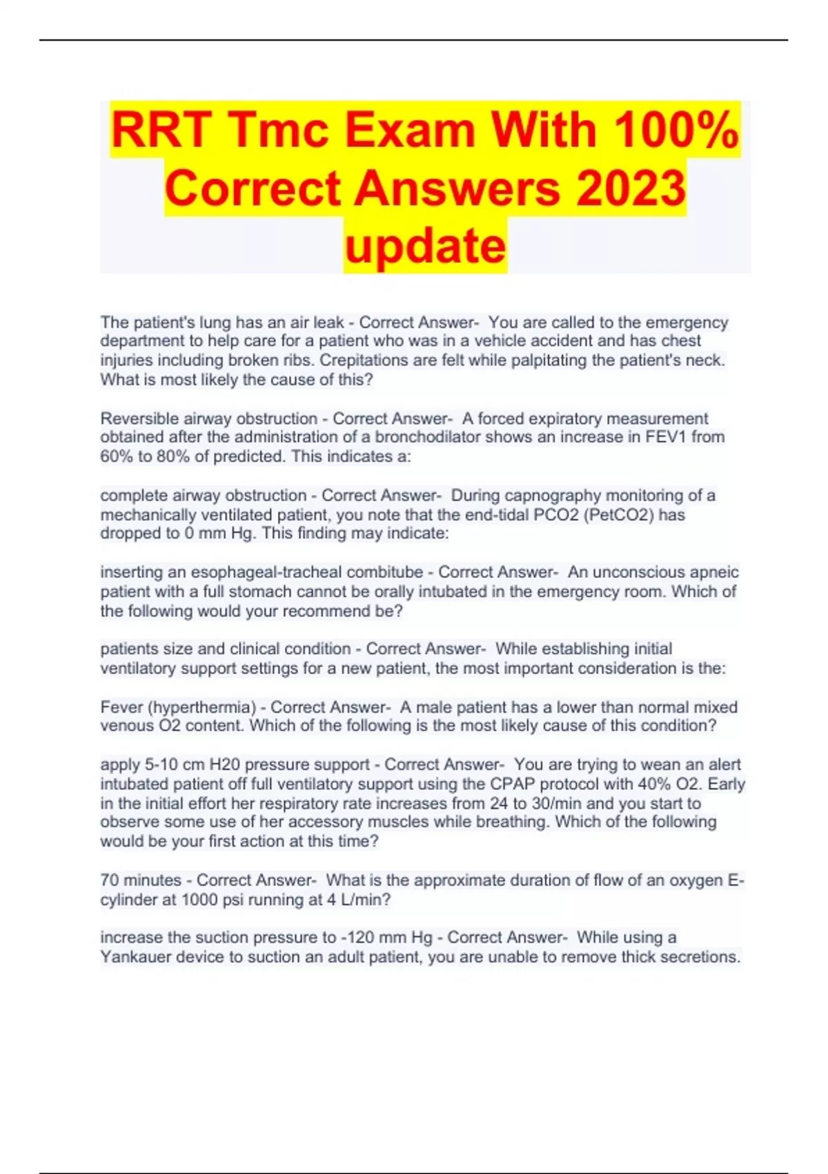 RRT Tmc Exam With 100% Correct Answers 2023 update