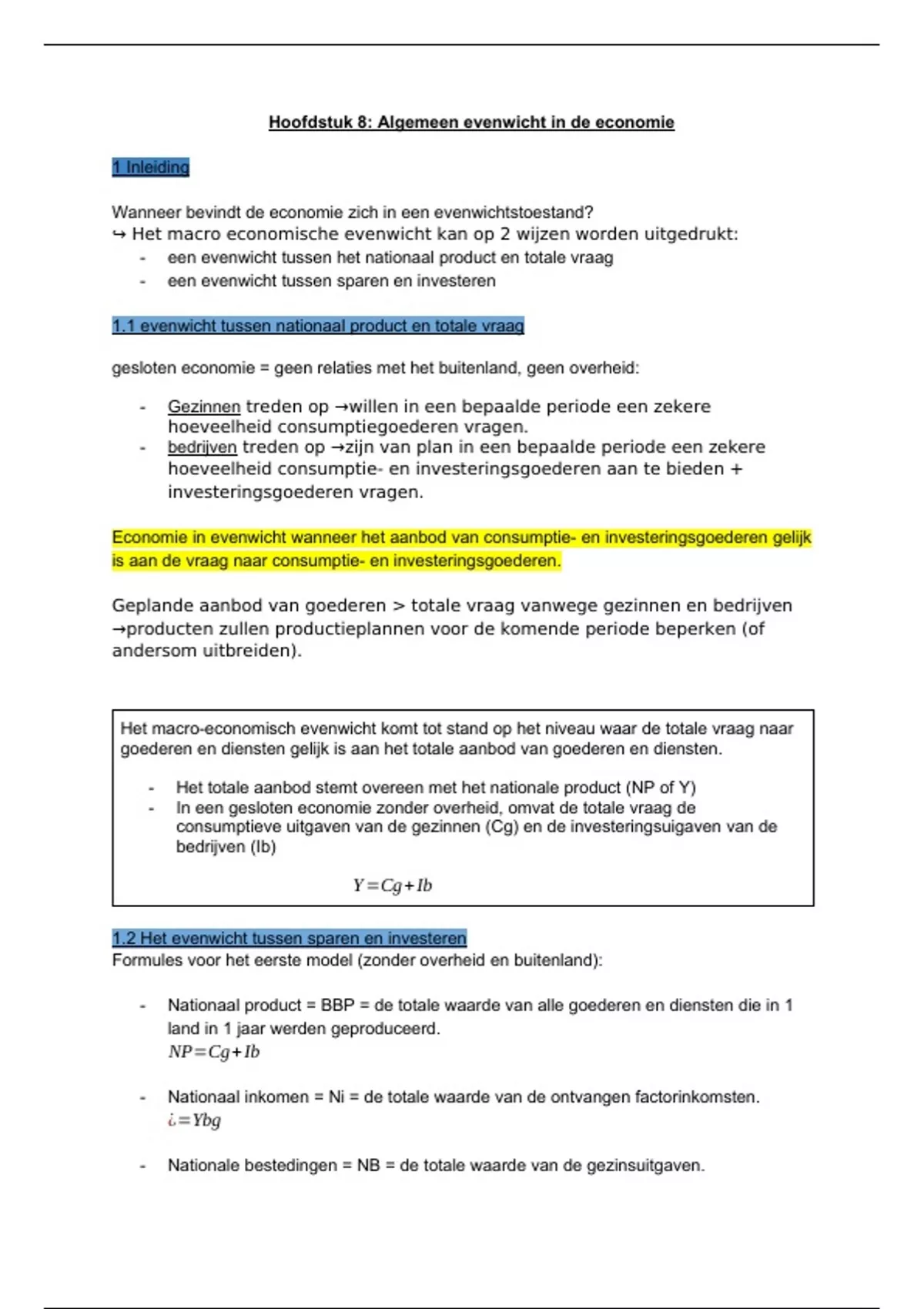 1.1 evenwicht tussen nationaal product en totale vraag
