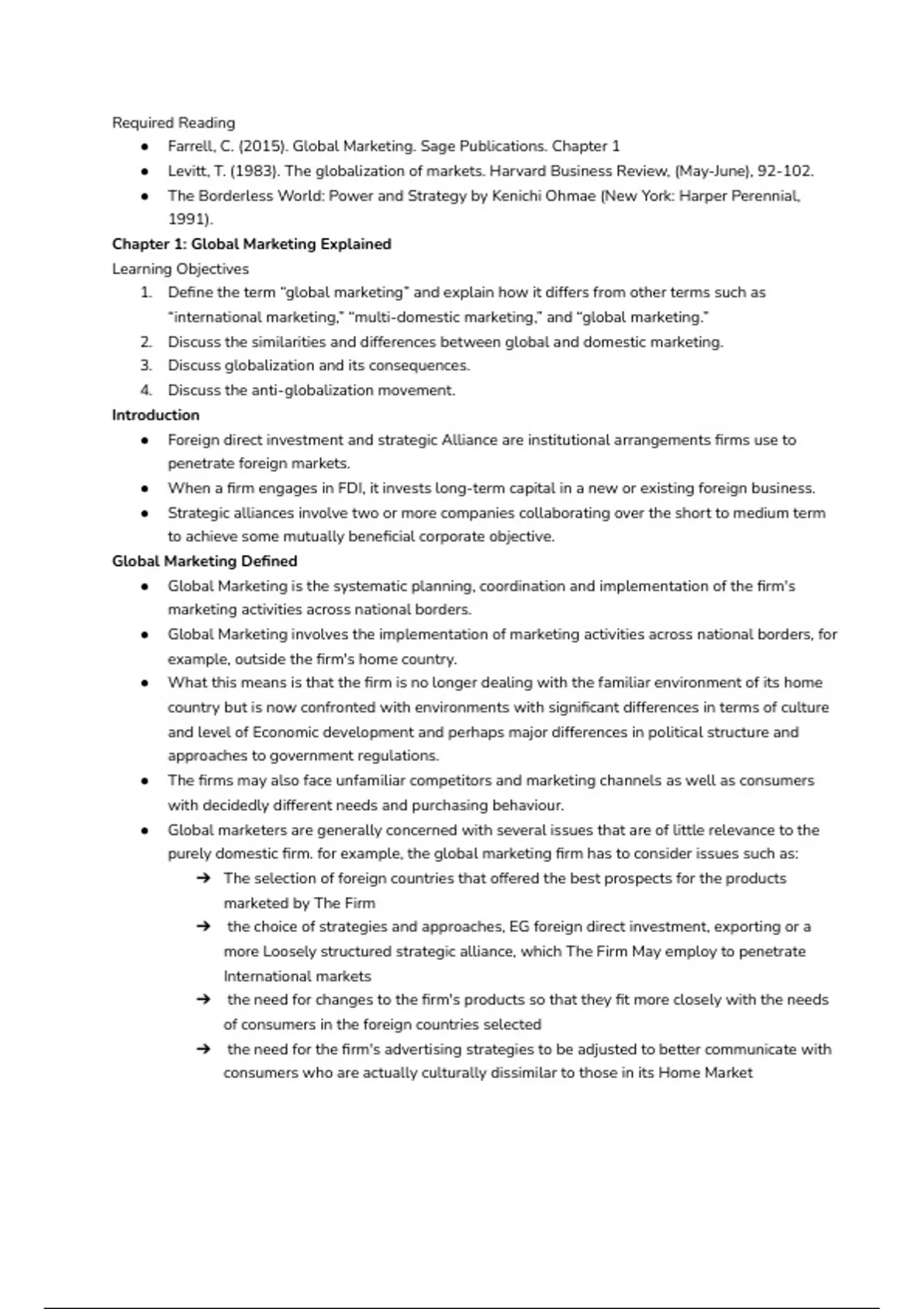 ● Farrell, C. (2015). Global Marketing. Sage Publications. Chapter 1