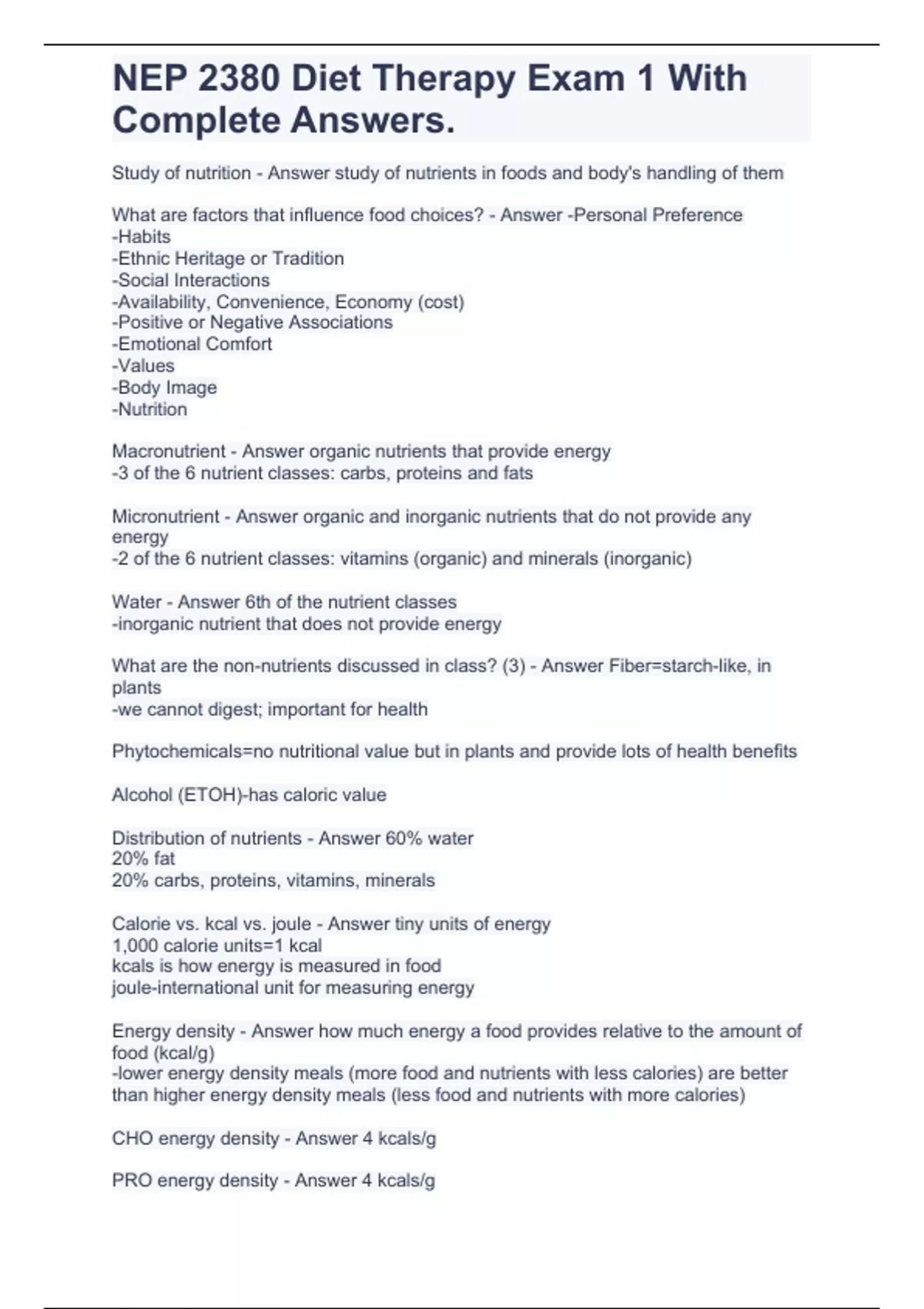 NEP 2380 Diet Therapy Exam 1 With Complete Answers.