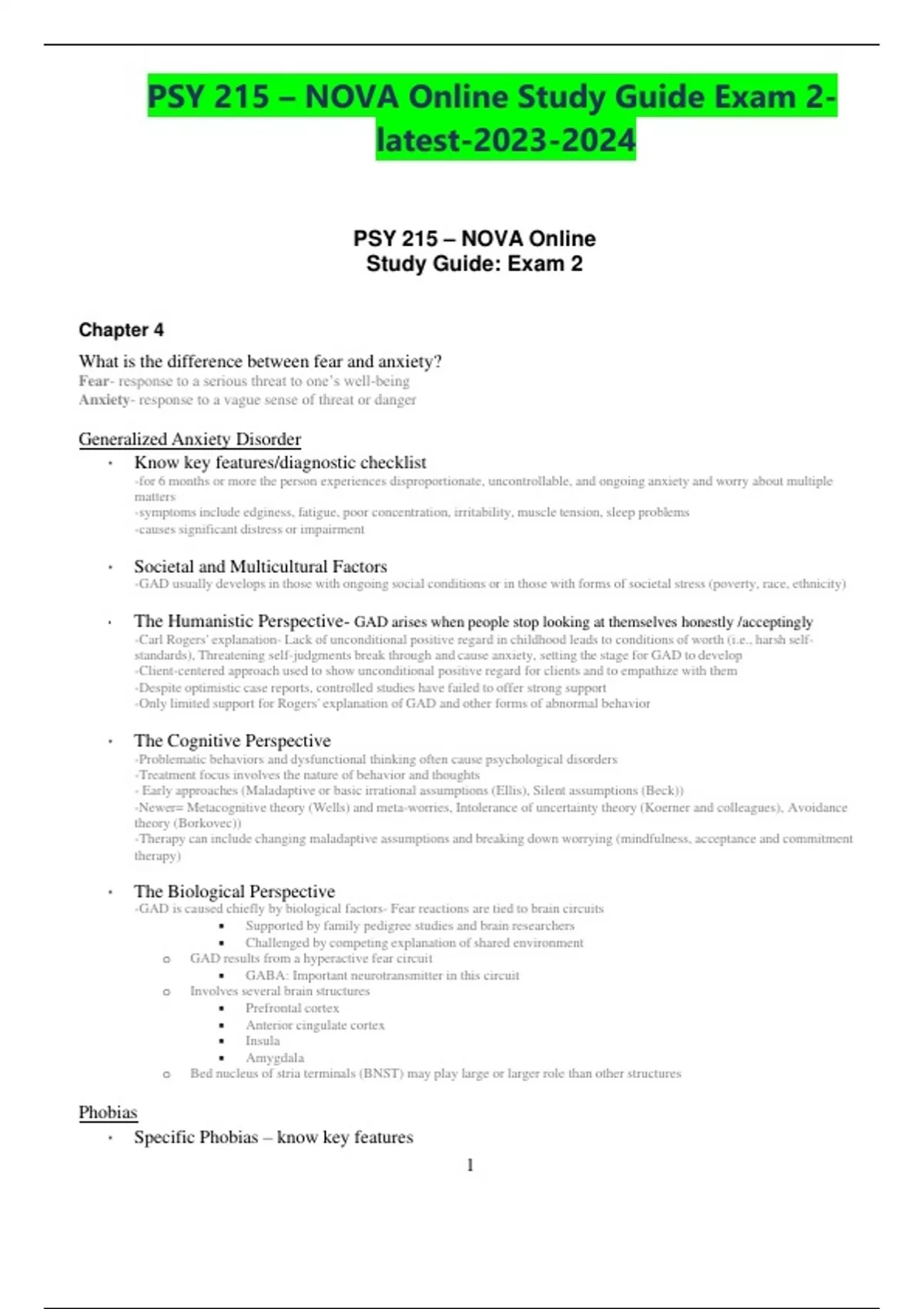PSY 215 – NOVA Online Study Guide Exam 2-latest-