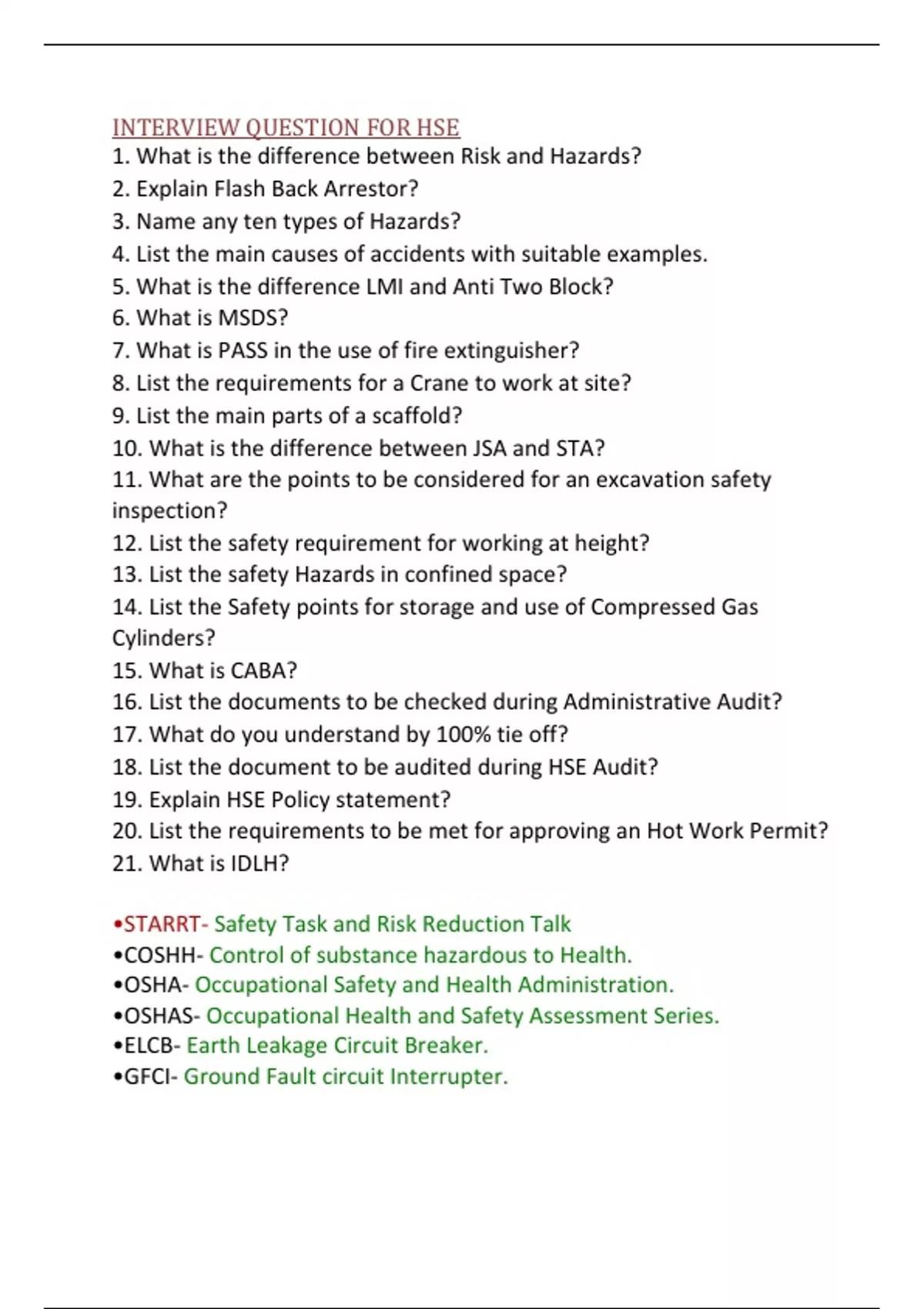 INTERVIEW QUESTION FOR HSE
