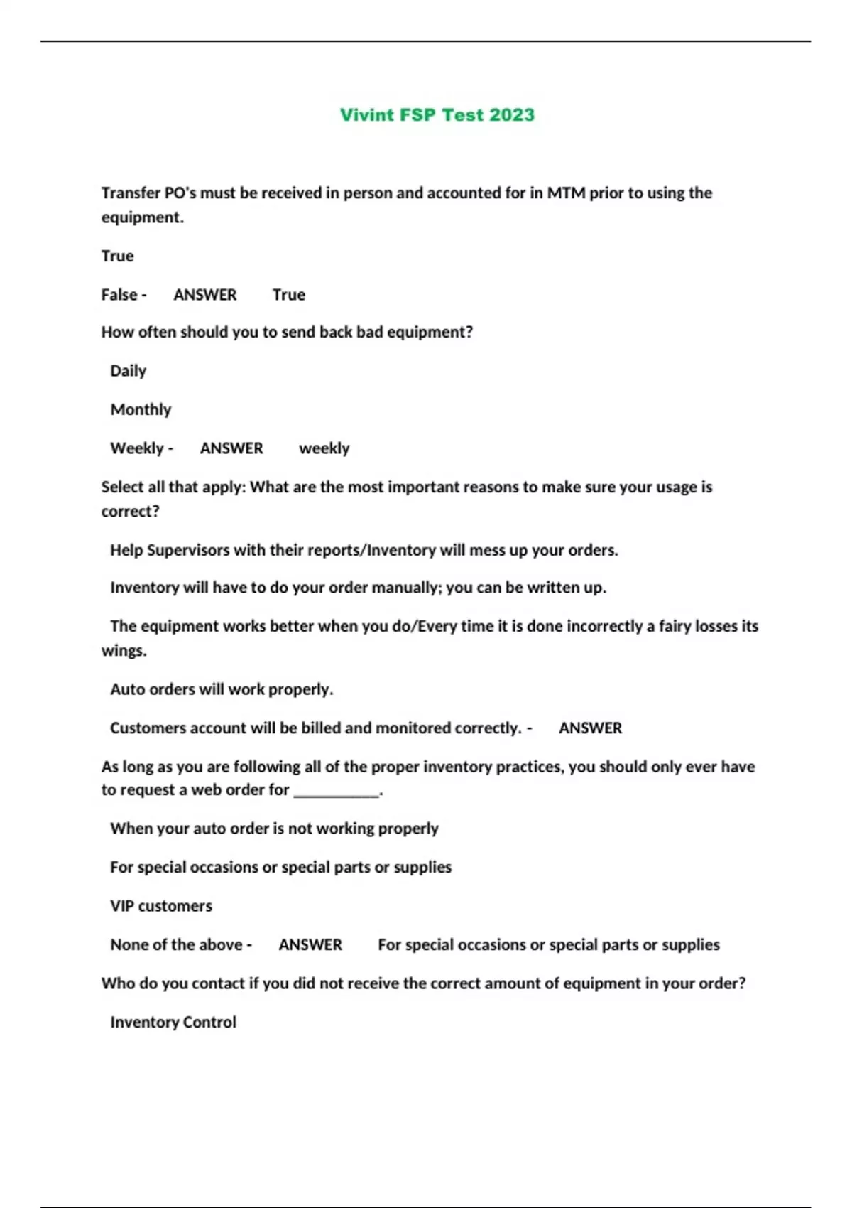 Vivint FSP Test 2023