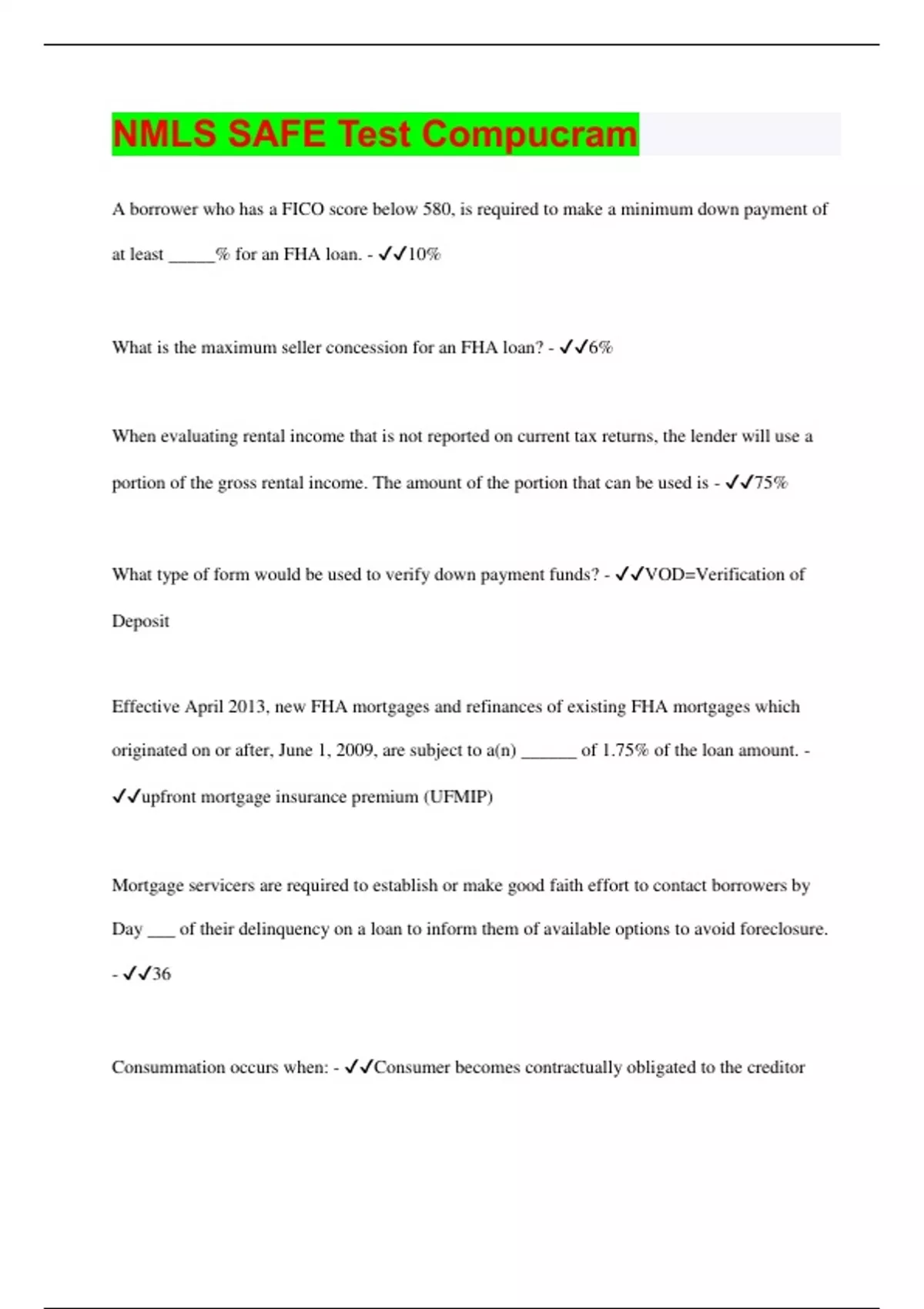 NMLS SAFE Test Compucram | Questions with 100% Correct Answers | Updated & Verified