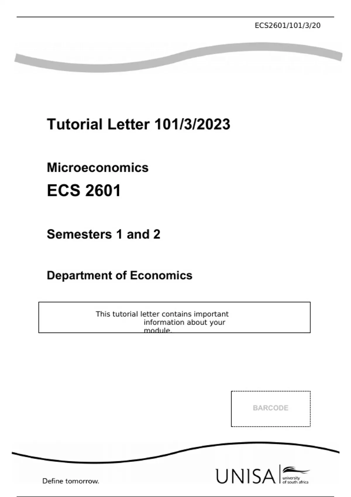 Tutorial Letter 101/3/2023 Microeconomics ECS 2601 Semesters 1 and 2