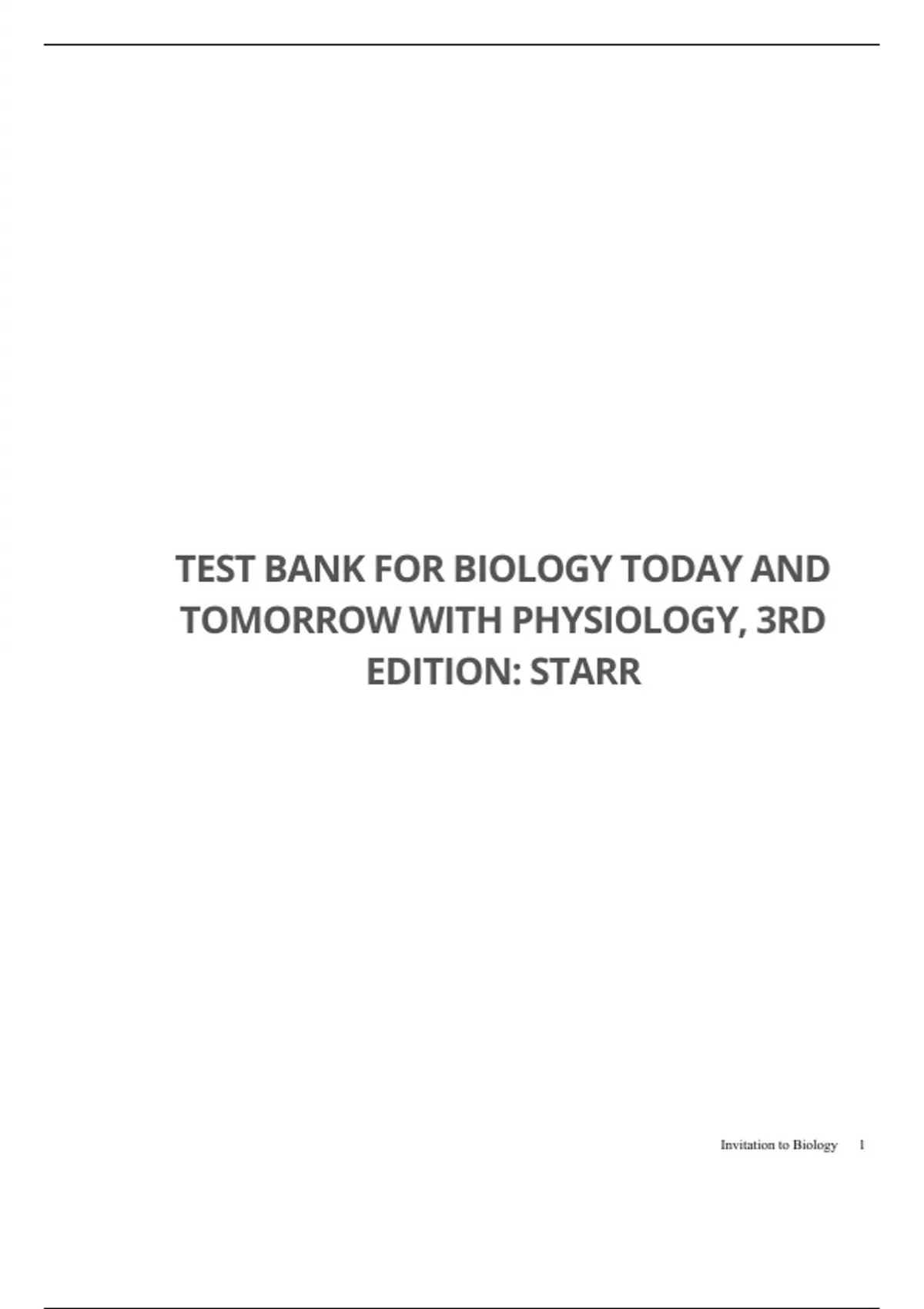 TEST BANK FOR BIOLOGY TODAY AND TOMORROW WITH PHYSIOLOGY, 3RD EDITION: STARR