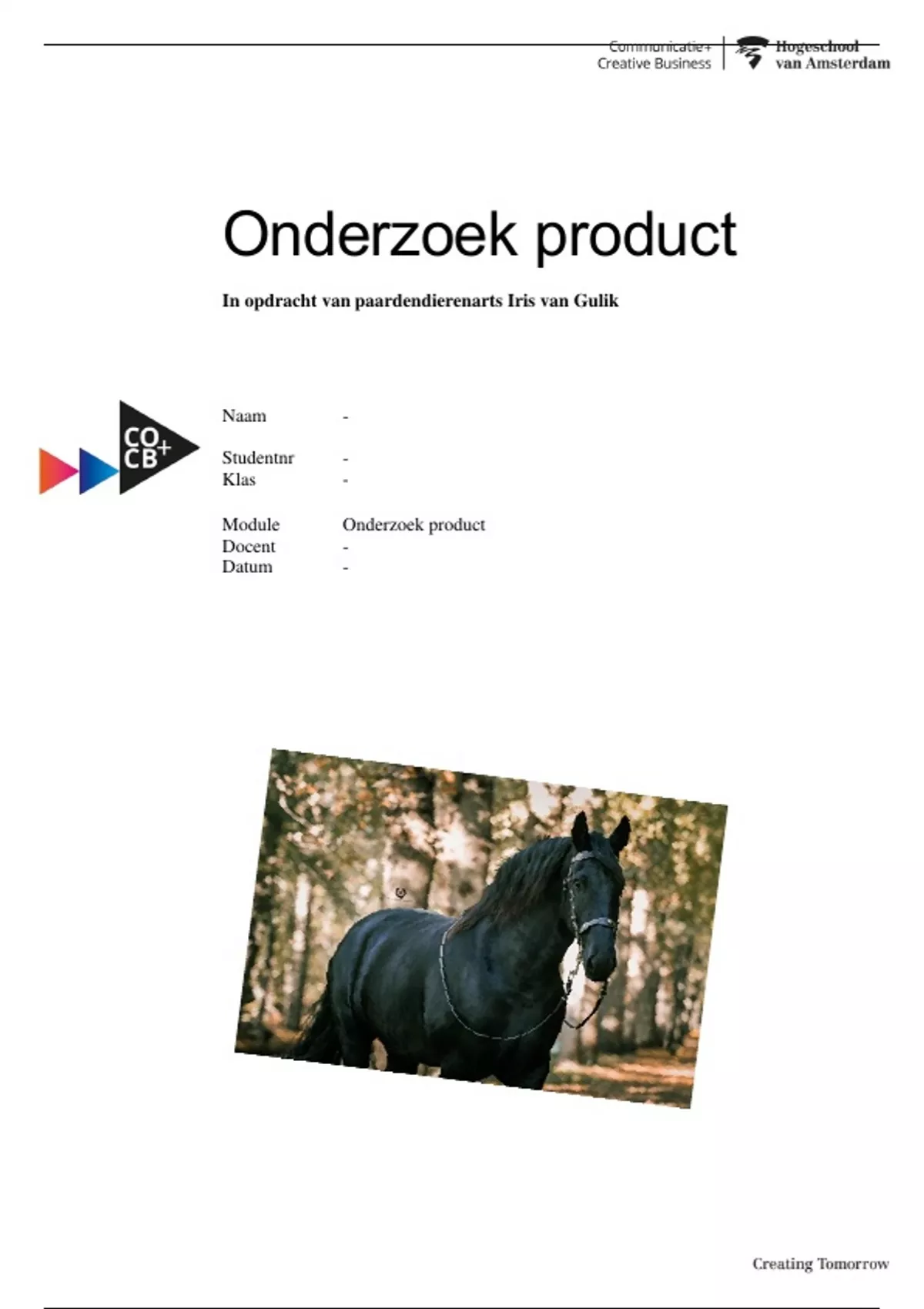 De opdrachtgever is Iris van Gulik. Zij is al meer dan 15 jaar paardendierenarts en dat beroep
