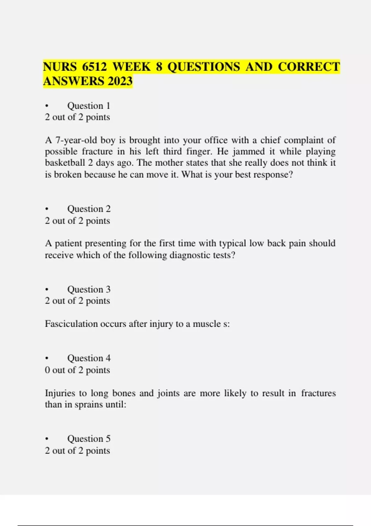 NURS 6512 WEEK 8 QUESTIONS AND CORRECT ANSWERS 2023