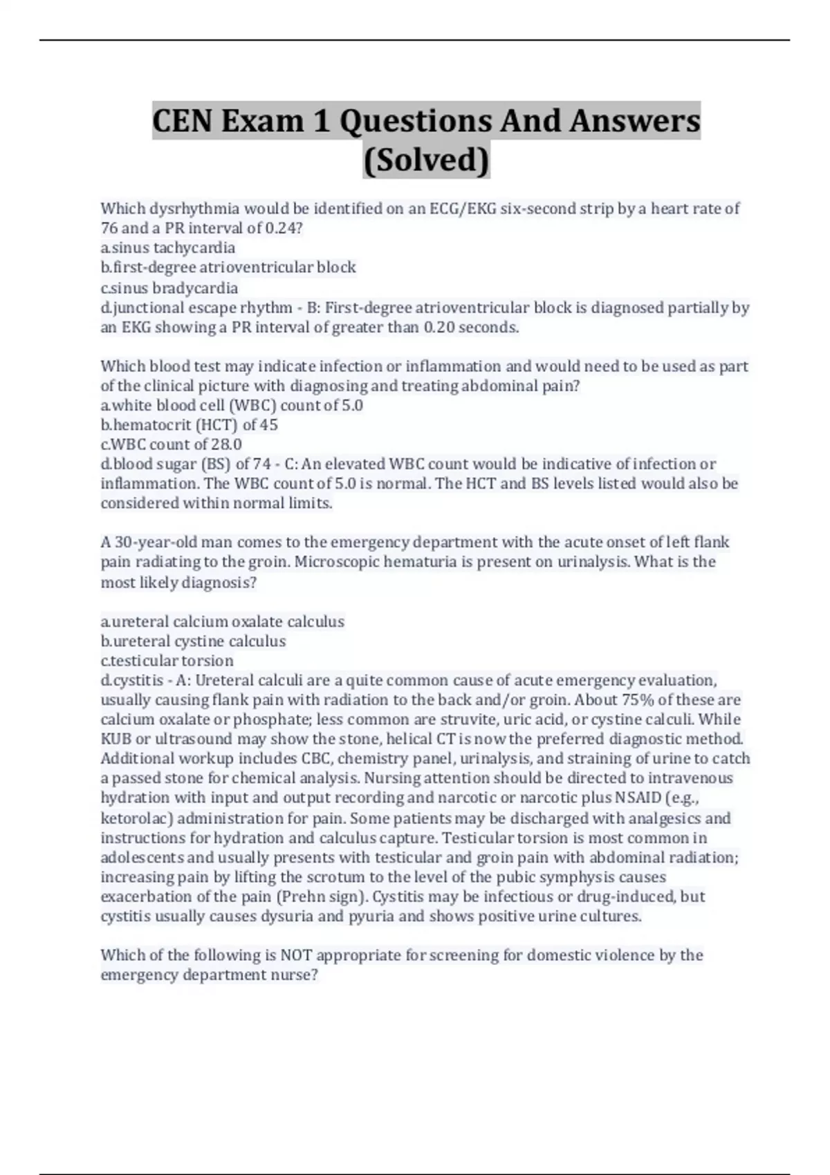 CEN Exam 1 Questions And Answers (Solved)