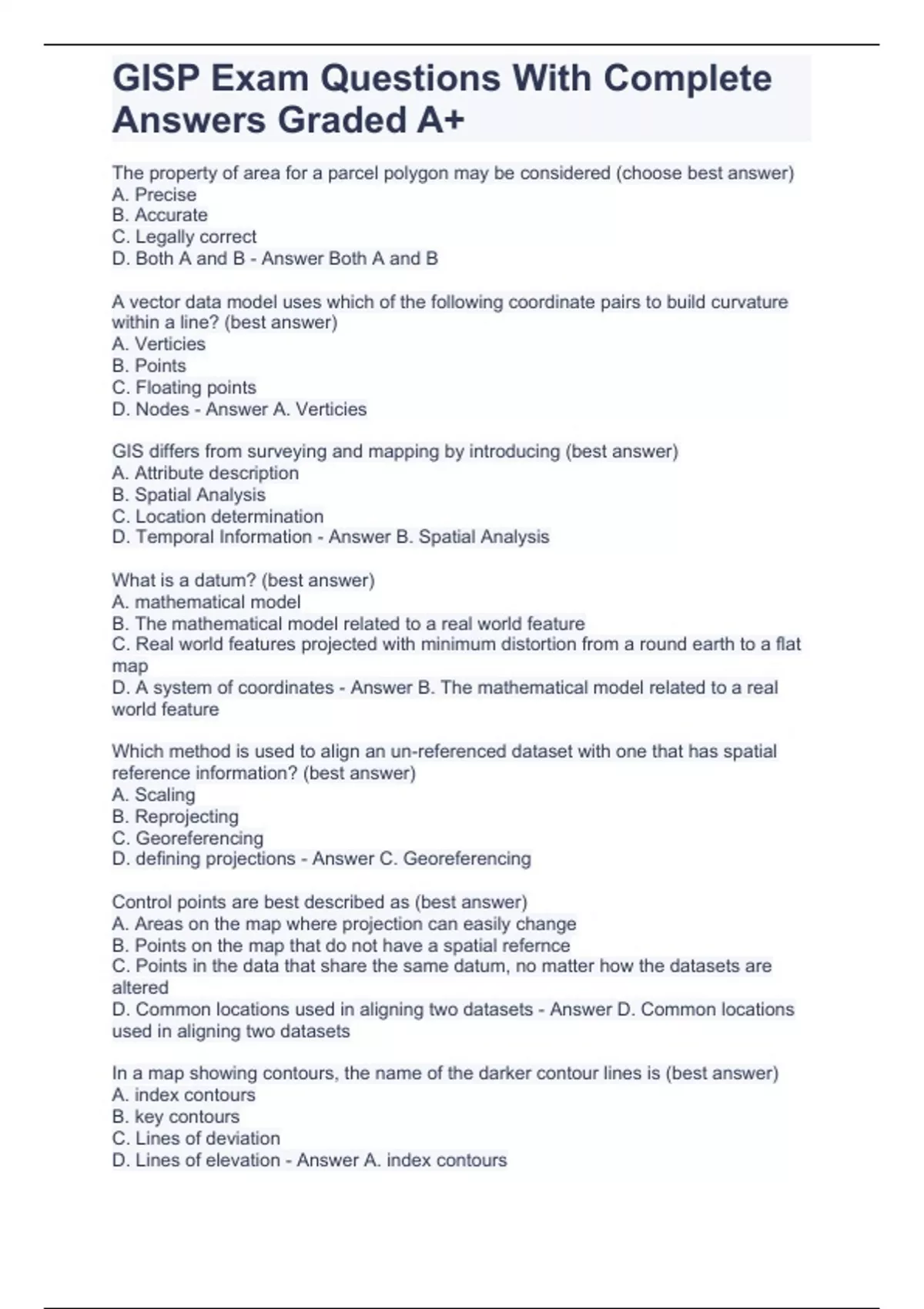 gisp exam questions with complete answers graded a