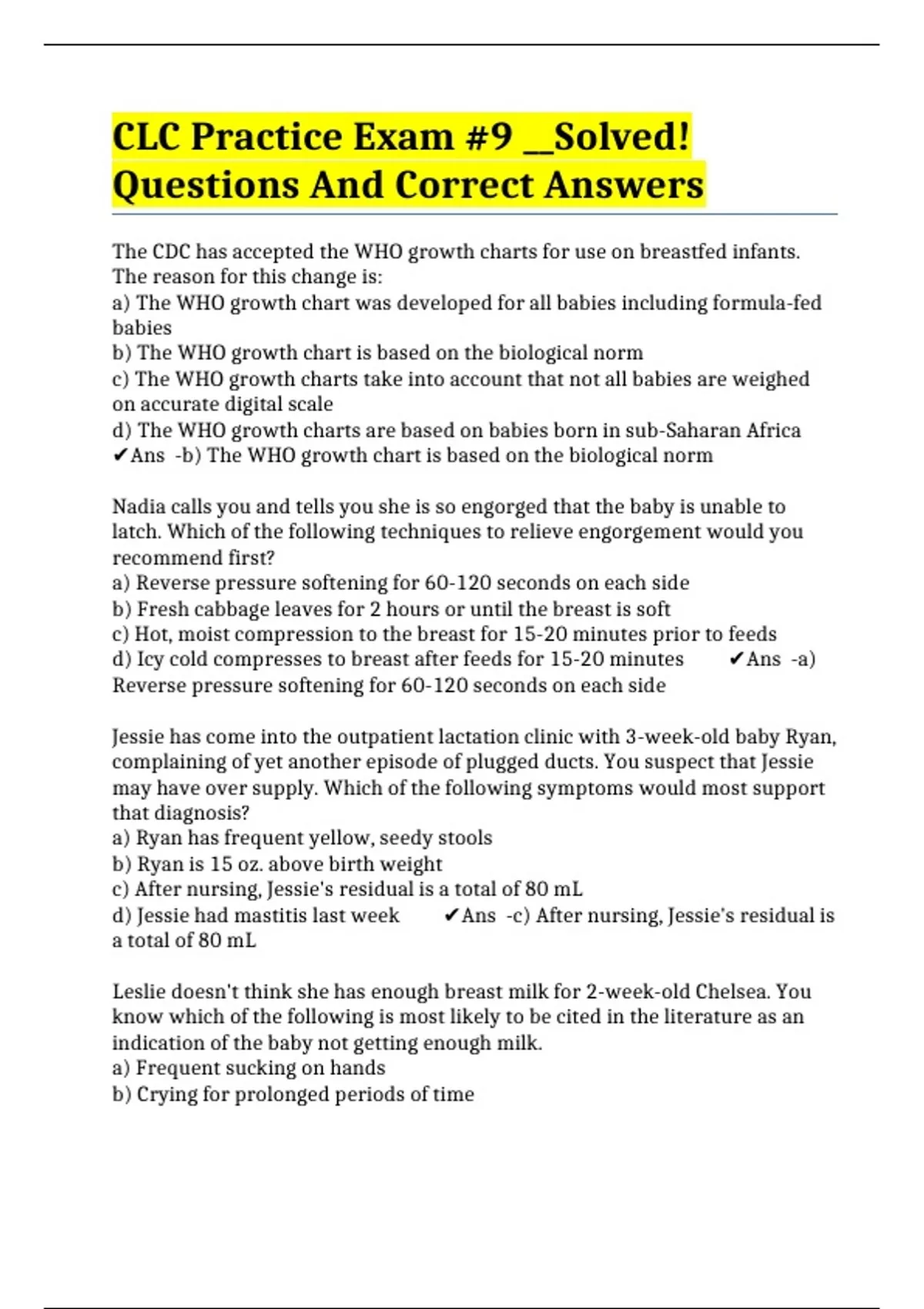 d) Jessie had mastitis last week ✔️Ans -c) After nursing, Jessie's residual is