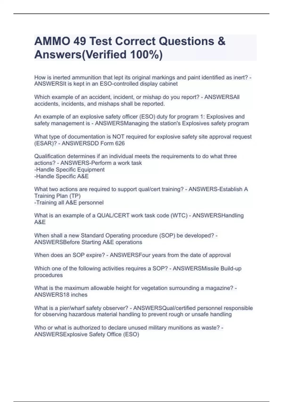 AMMO 49 Test Correct Questions & Answers(Verified 100%)