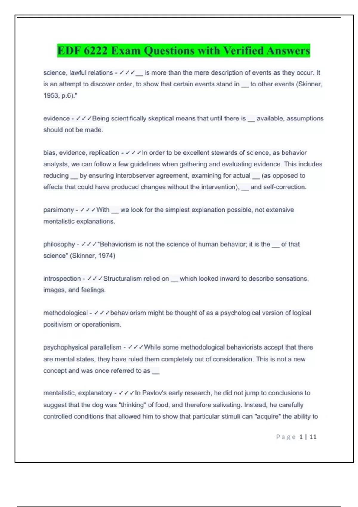 EDF 6222 Exam Questions with Verified Answers