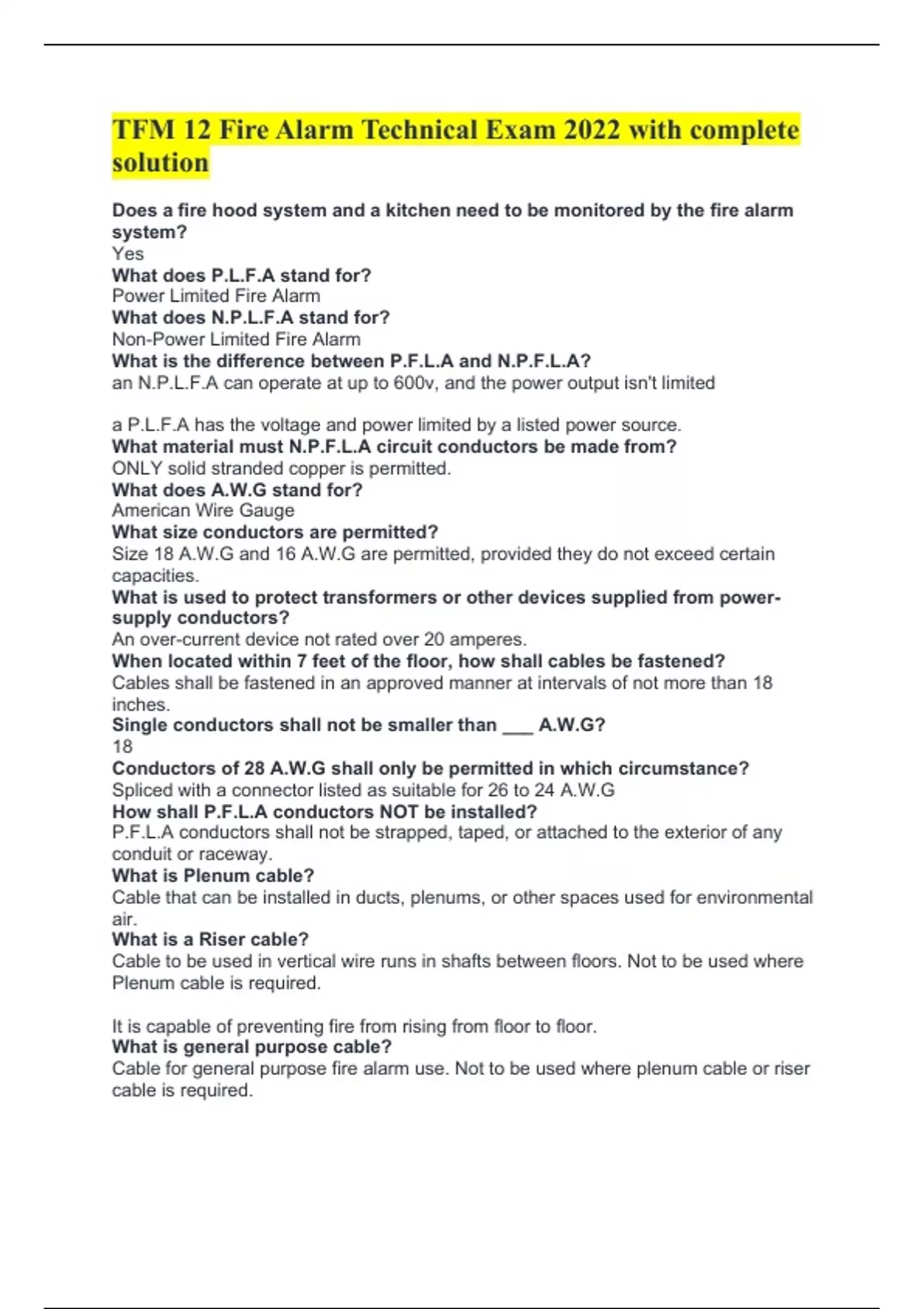 Power Limited Fire Alarm Riser (F.P.L.R) C.M.P, F.P.L.P.