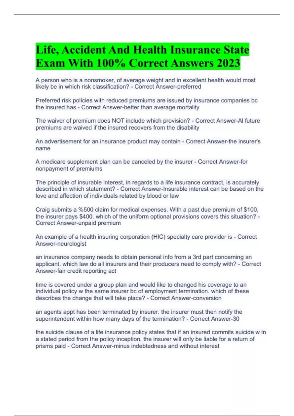 Life, Accident And Health Insurance State Exam With 100% Correct Answers 2023
