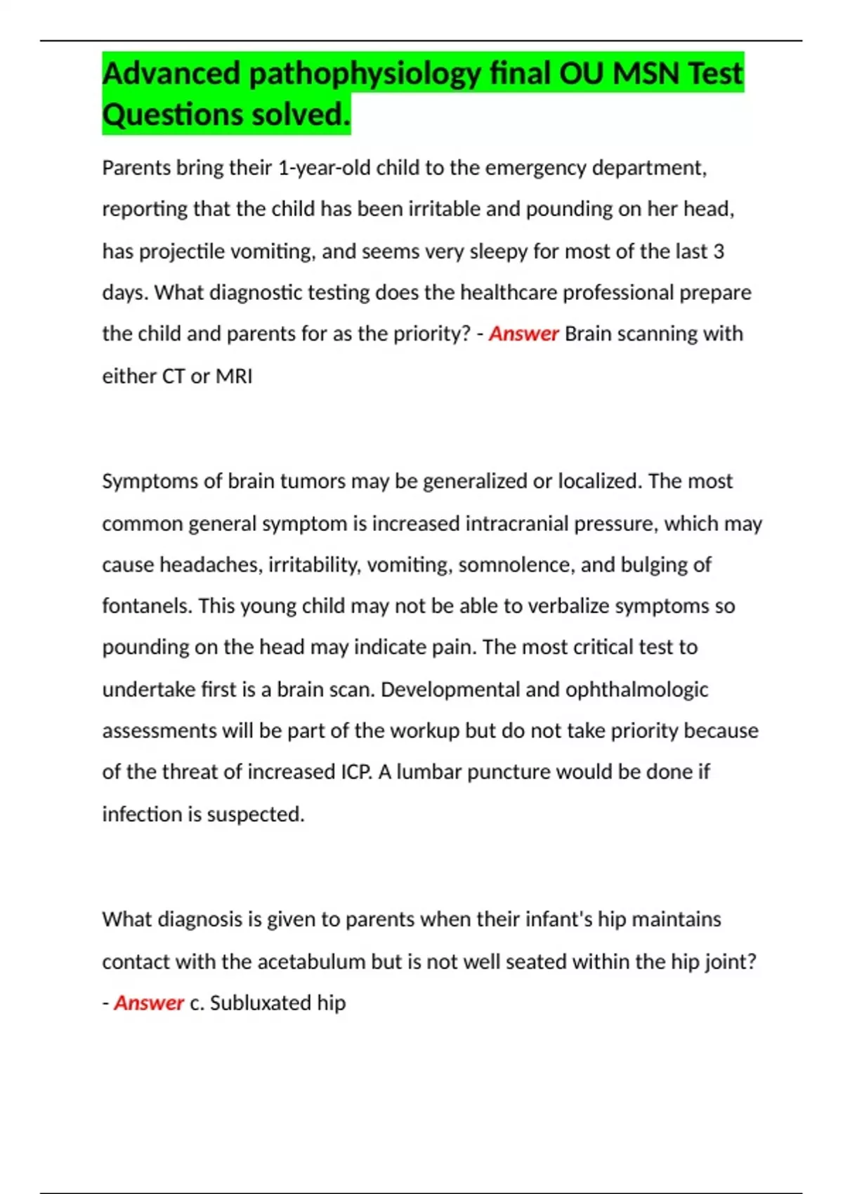 Advanced pathophysiology final OU MSN Test Questions solved.