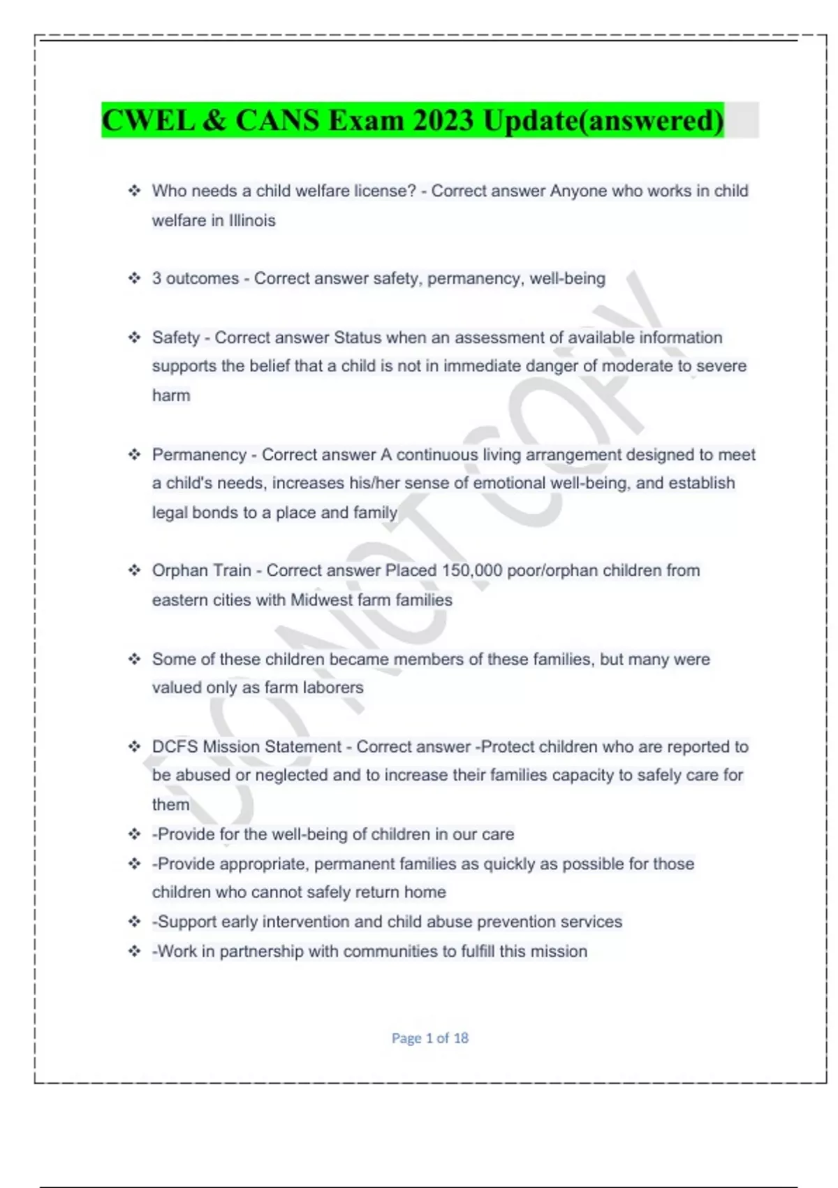CWEL & CANS Exam 2023 Update(answered)
