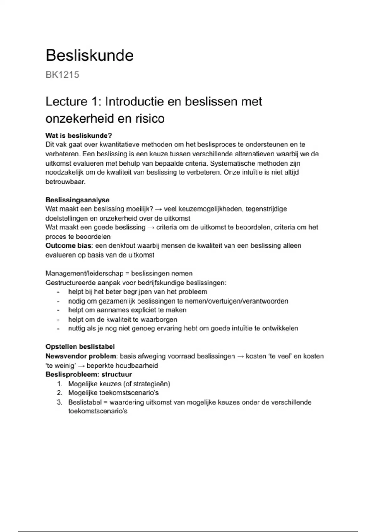 Besliskunde aantekeningen compleet
