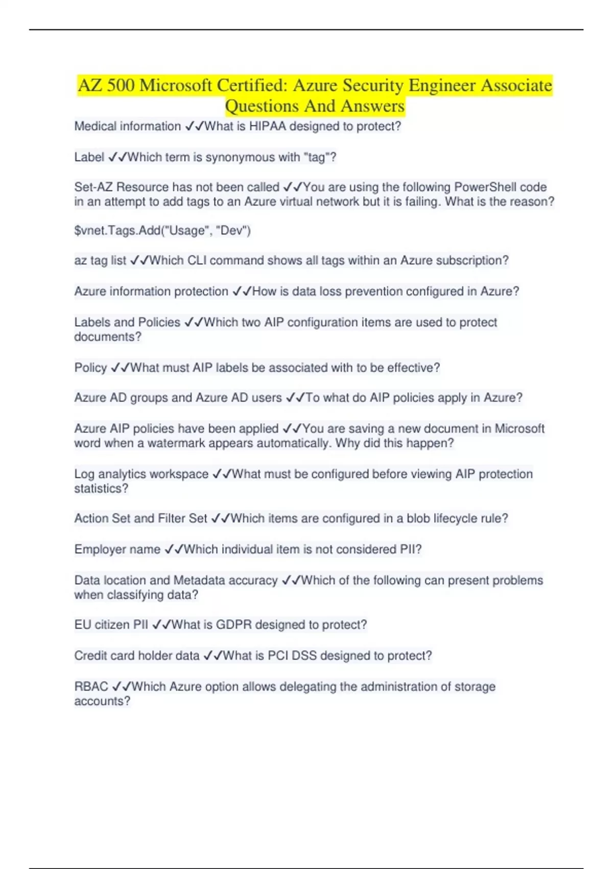 AZ 500 Microsoft Certified: Azure Security Engineer Associate Questions And Answers AZ 500 Microsoft Certified: Azure Security Engineer Associate Questions And Answers