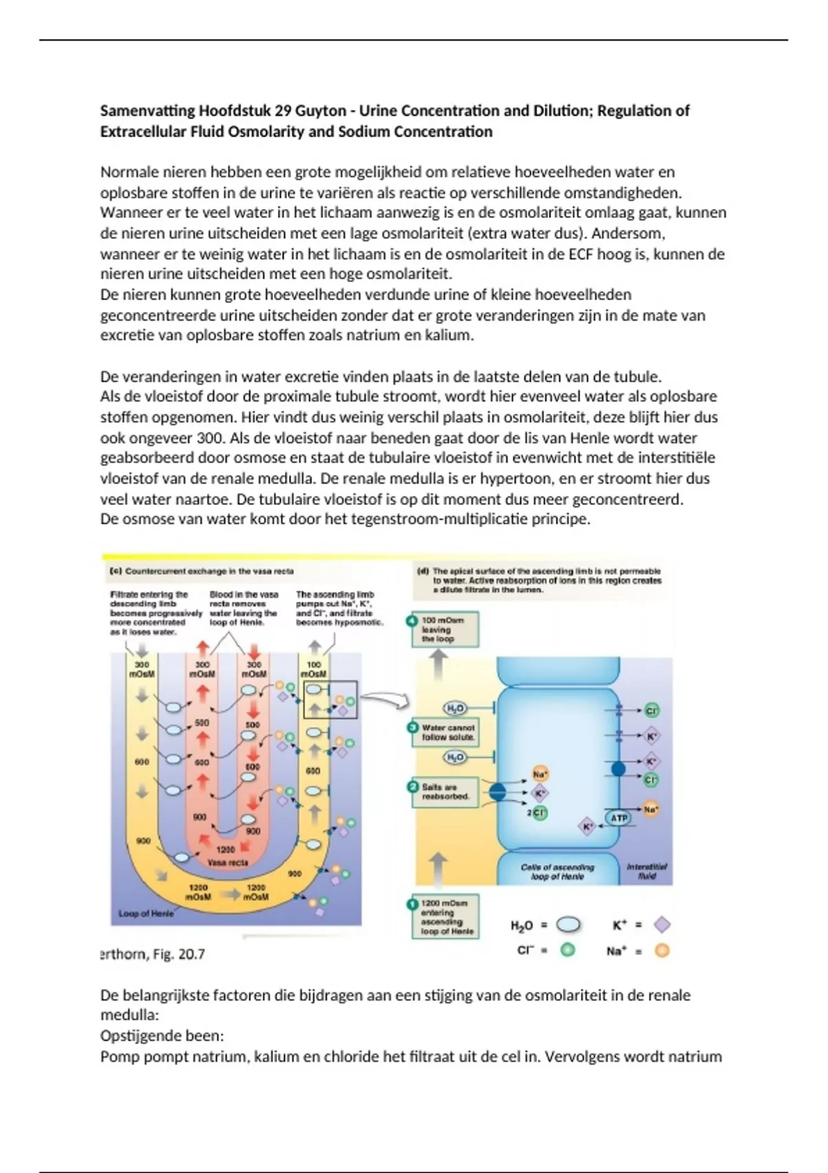 Samenvatting H29 Guyton Physiology - Urine Concentration and Dilution