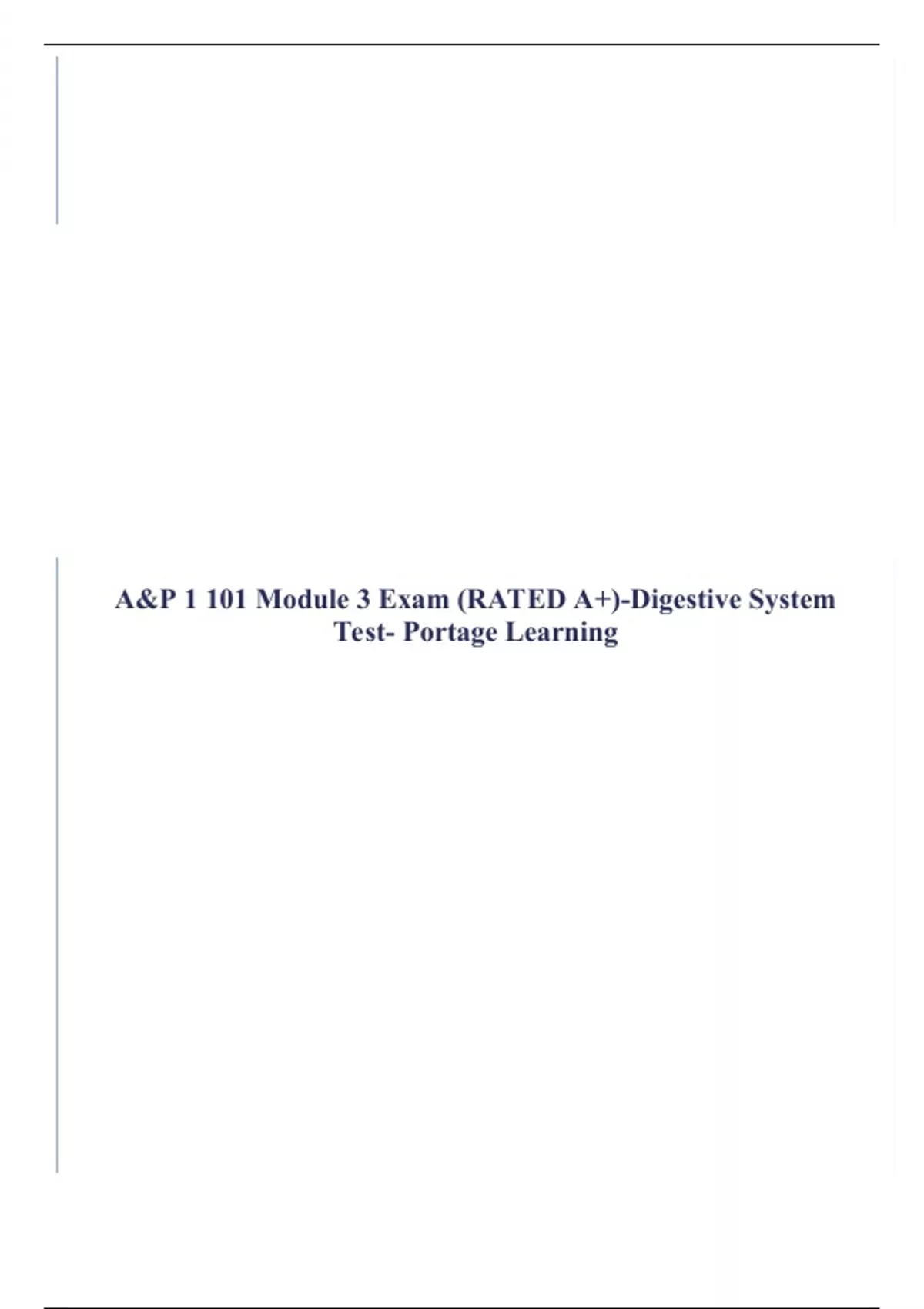 A&P 1 101 Module 3 Exam (RATED A+)-Digestive System Test- Portage Learning