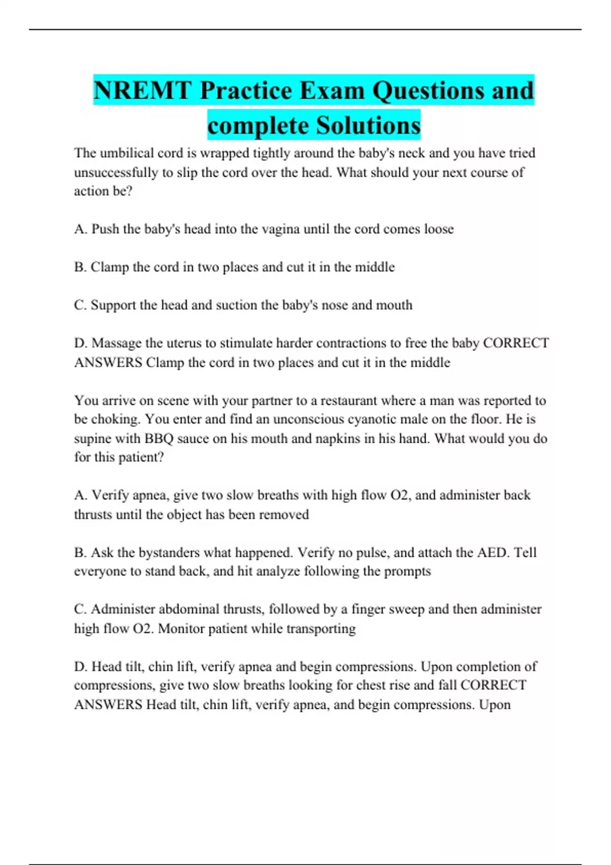 NREMT Practice Exam Questions and complete Solutions