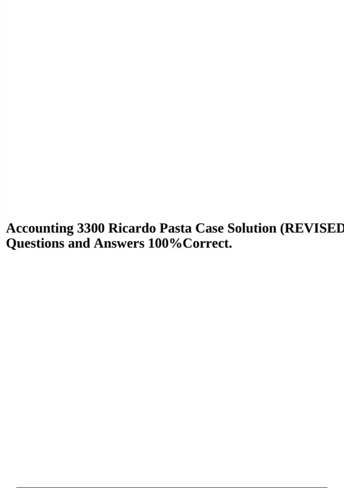 Accounting 3300 Ricardo Pasta Case Solution (REVISED) Questions and Answers 100%Correct.