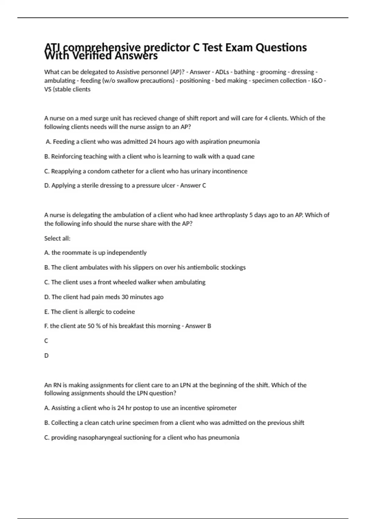 ATI comprehensive predictor C Test Exam Questions With Verified Answers
