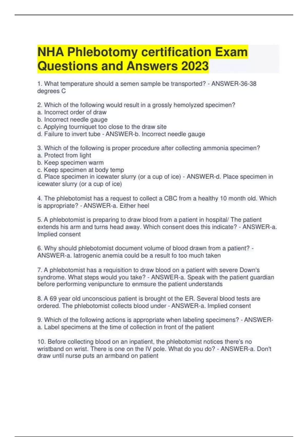 NHA Phlebotomy certification Exam Questions and Answers 2023