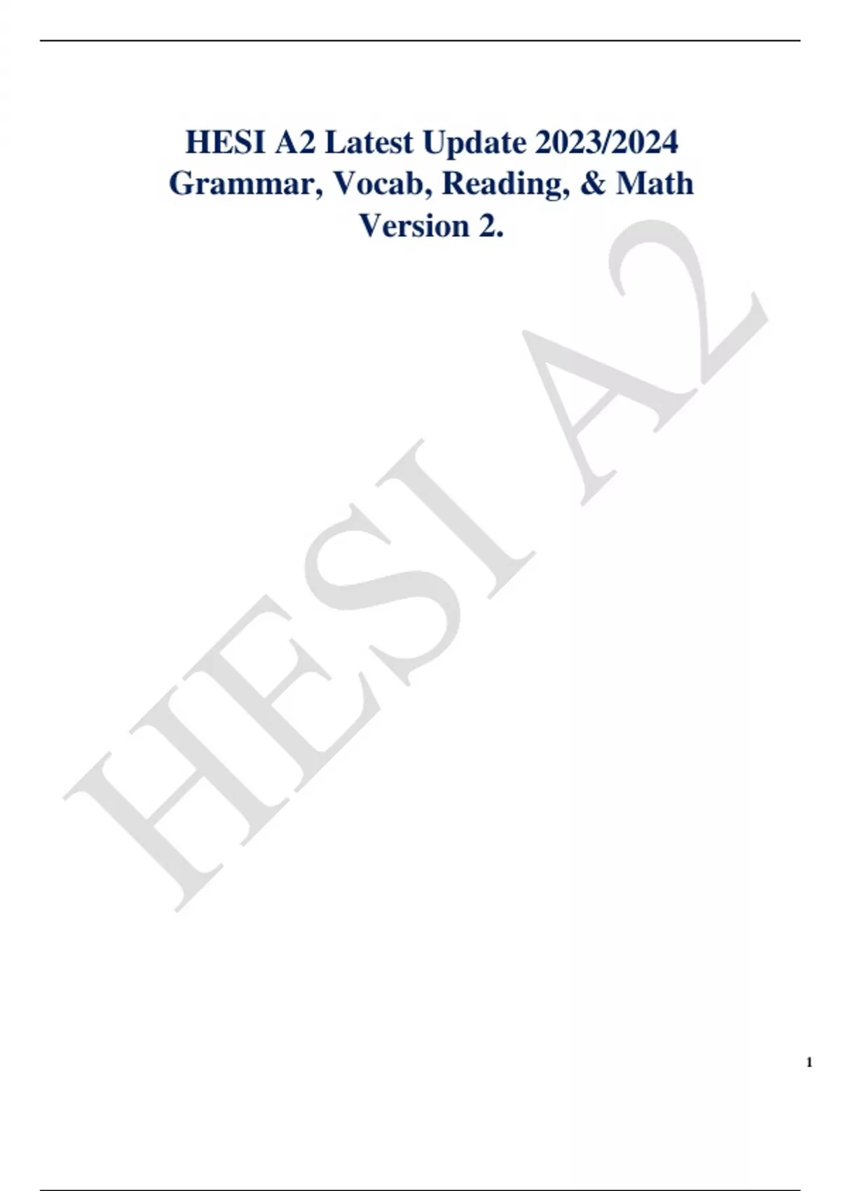 HESI A2 Latest Update 2023/2024 Grammar, Vocab, Reading, & Math Version 2.