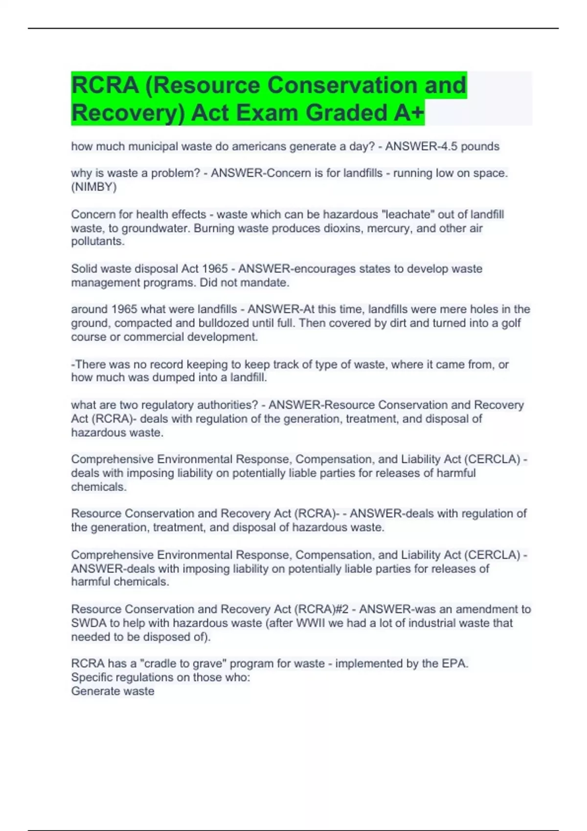 Resource Conservation and Recovery Act (RCRA)#2 - ANSWER-was an amendment to