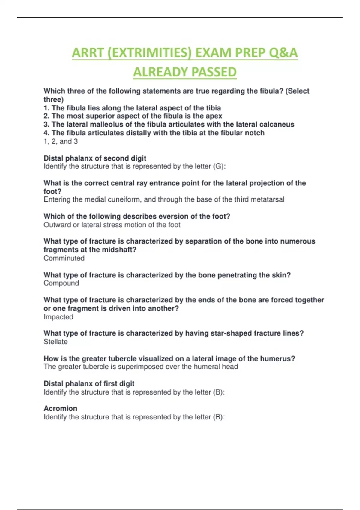 ARRT (EXTRIMITIES) EXAM PREP Q&A ALREADY PASSED RATED A.