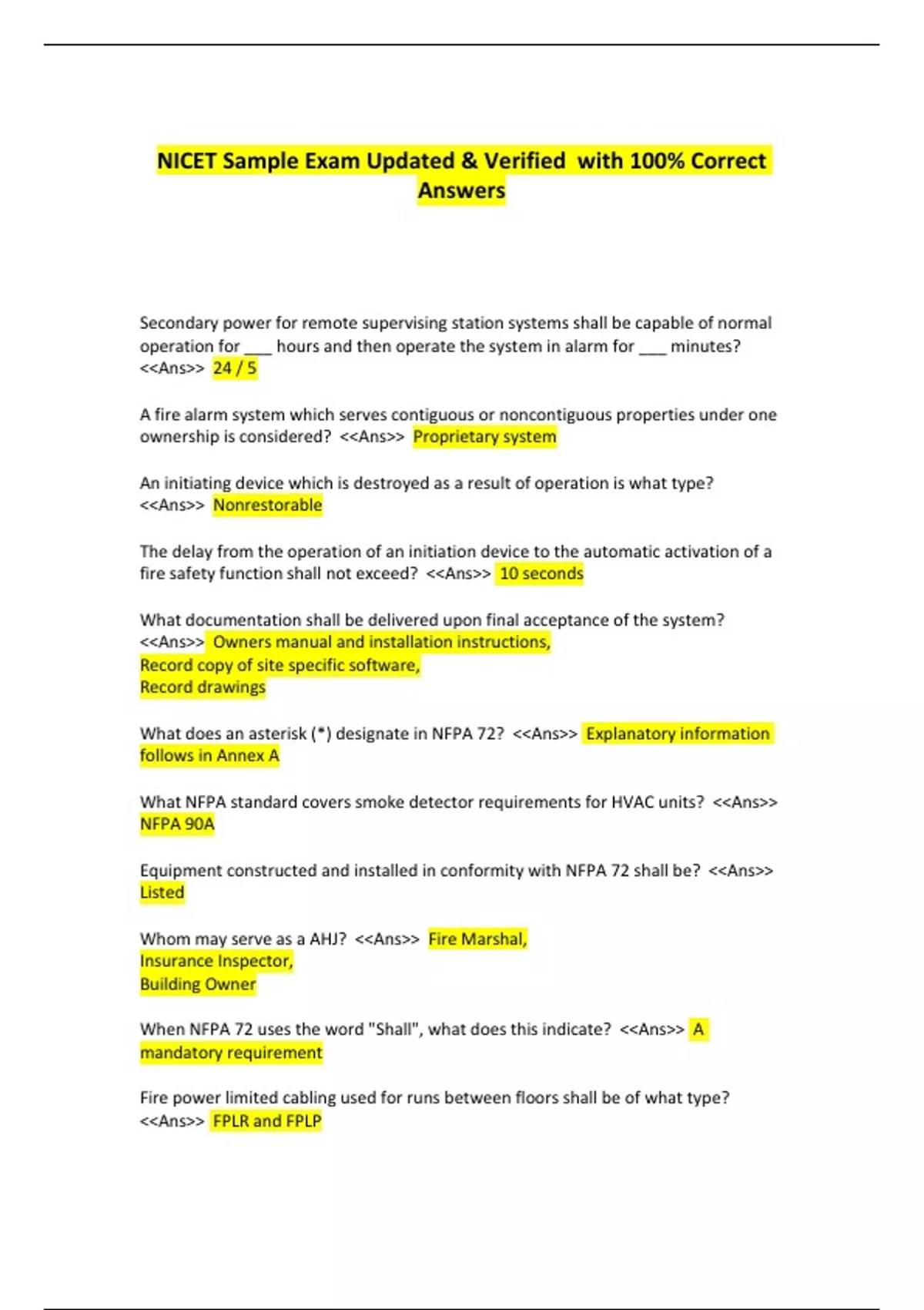 NICET Sample Exam Updated & Verified with 100% Correct Answers