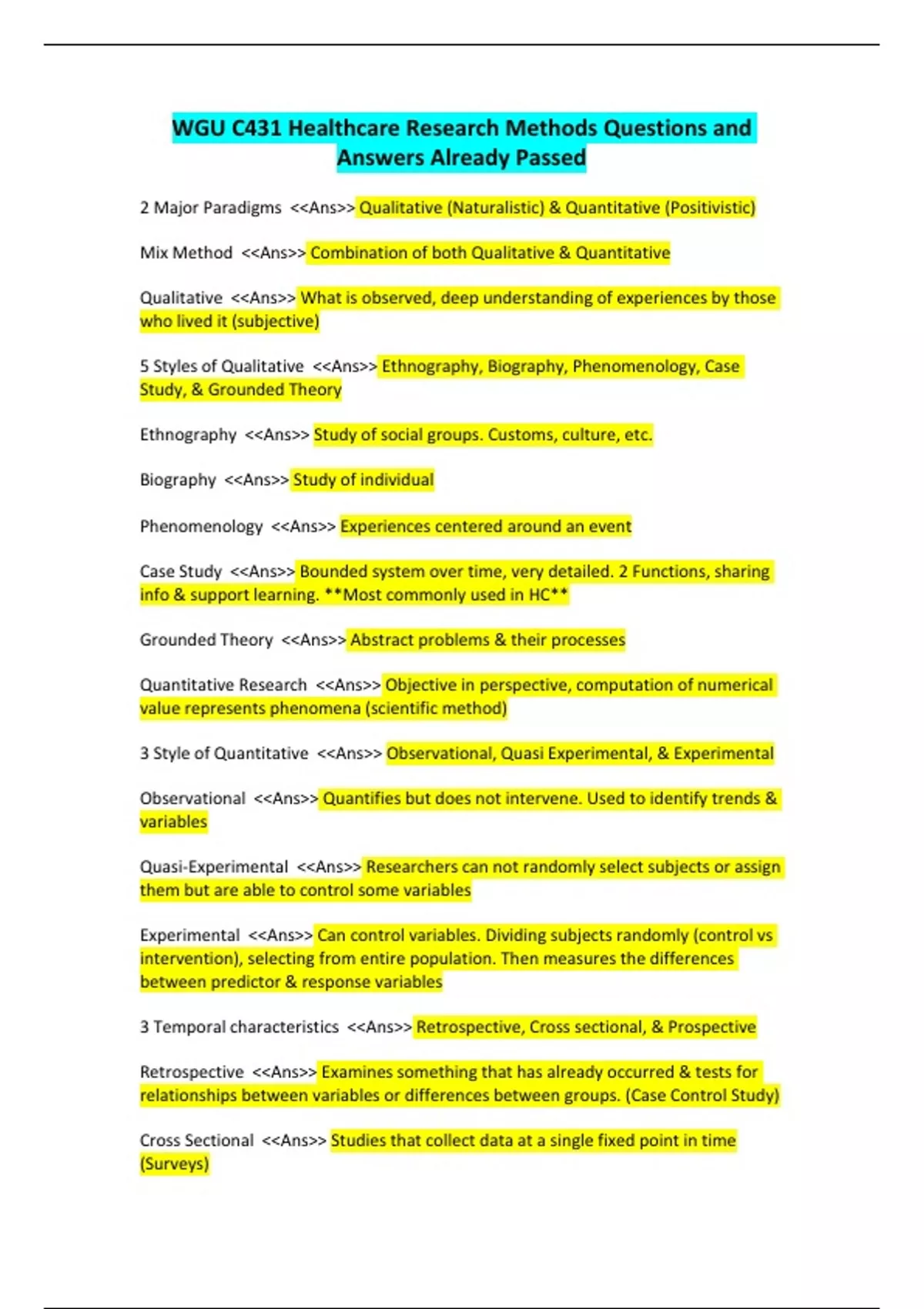 - WGU C431 Healthcare Research Methods