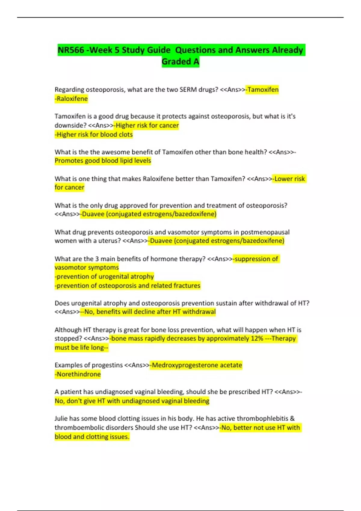NR566 -Week 5 Study Guide Questions and Answers Already Graded A
