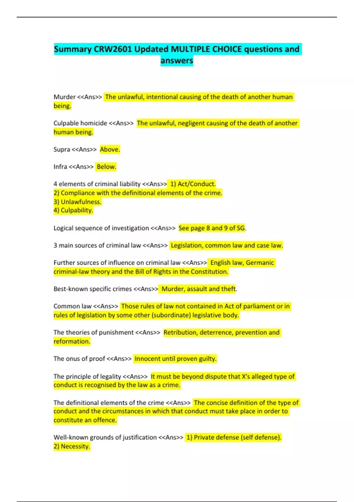 Summary CRW2601 Updated MULTIPLE CHOICE questions and answers