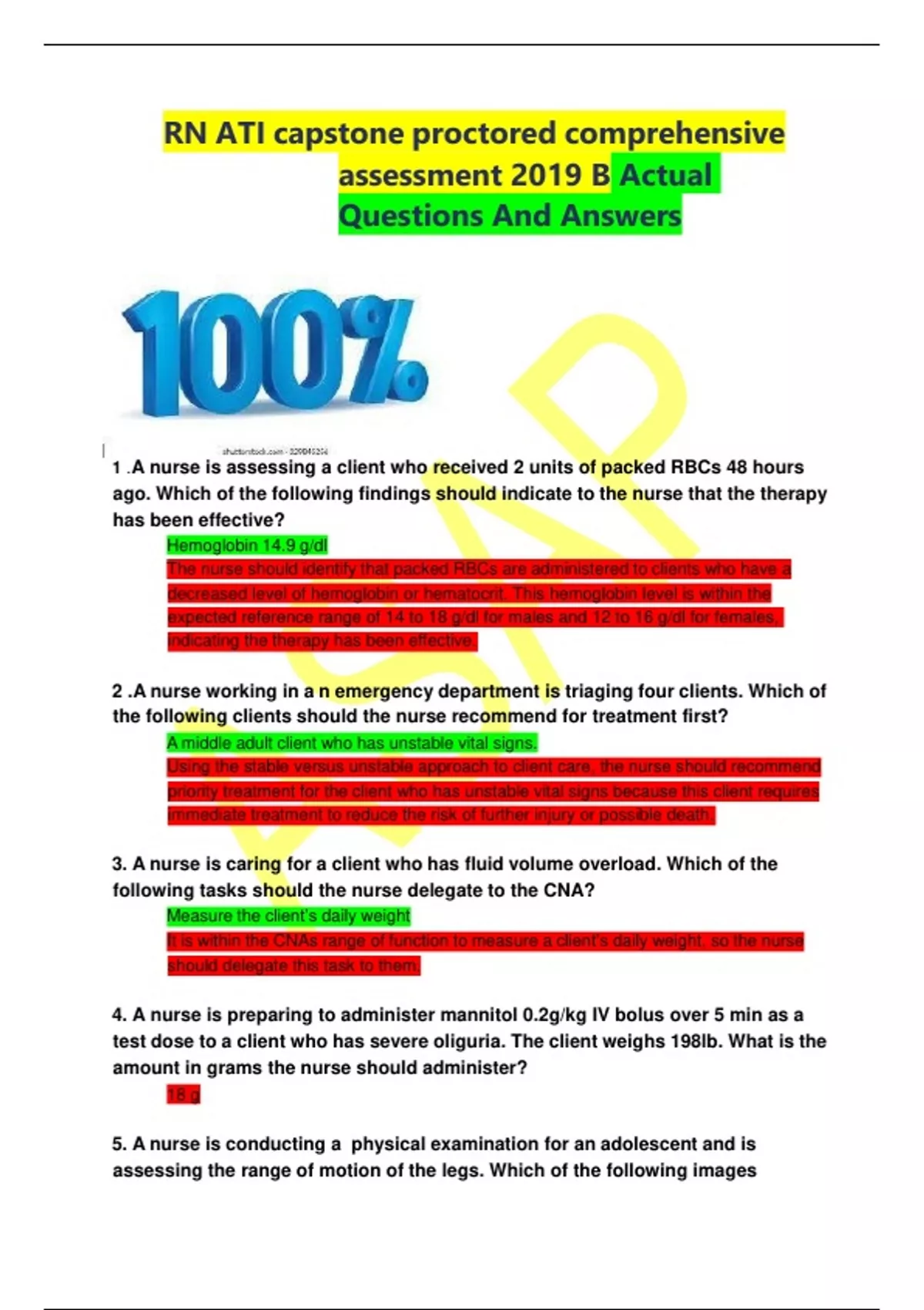 RN ATI capstone proctored comprehensive assessment 2019 B Actual Questions And Answers