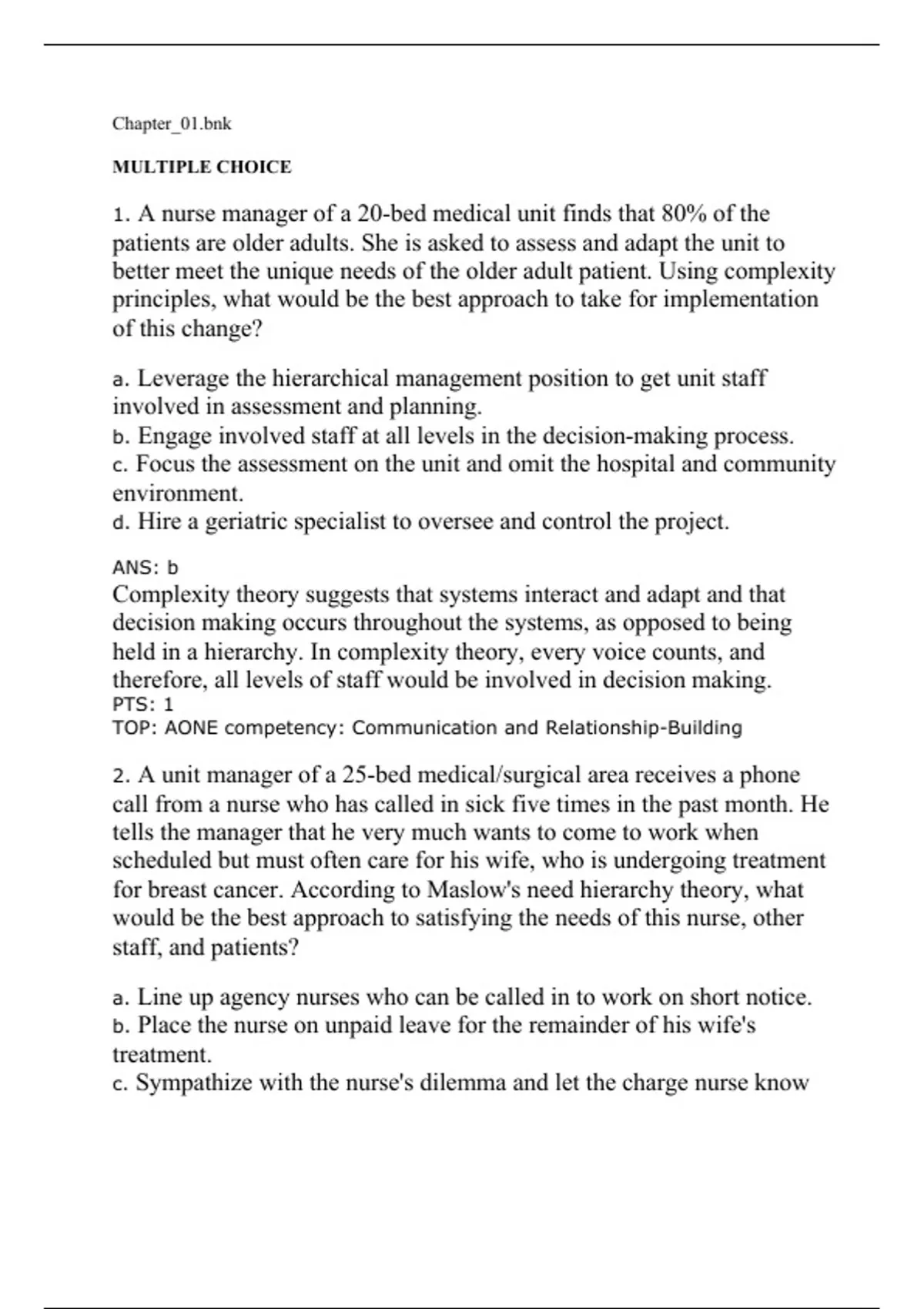 2. A unit manager of a 25-bed medical/surgical area receives a phone